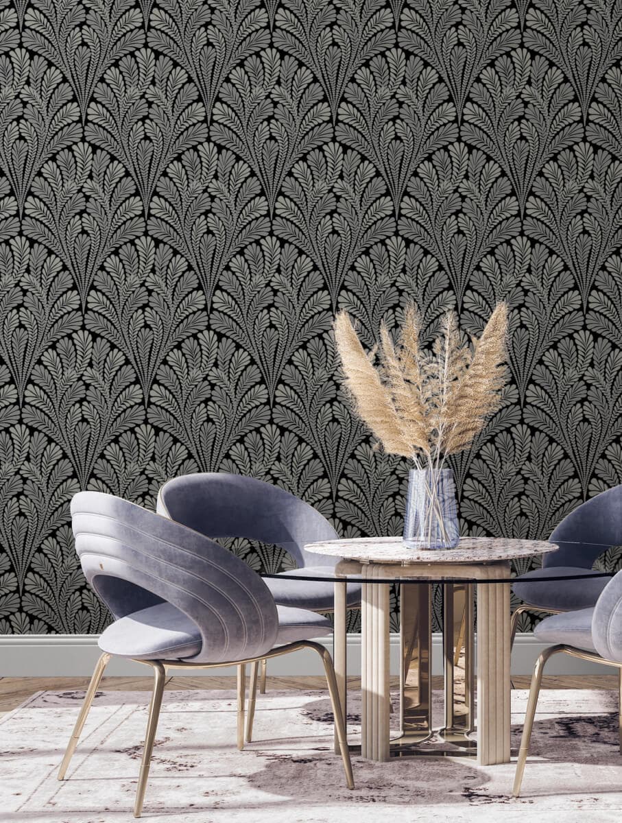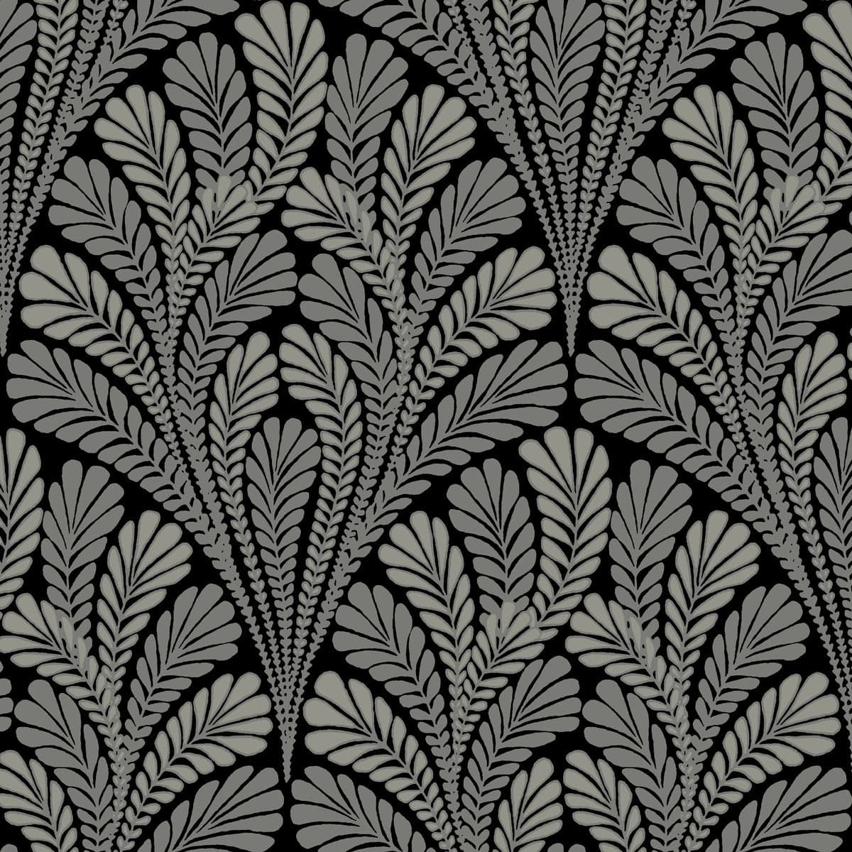 Shell Damask Wallpaper in Black/Glint from Damask Resource Library