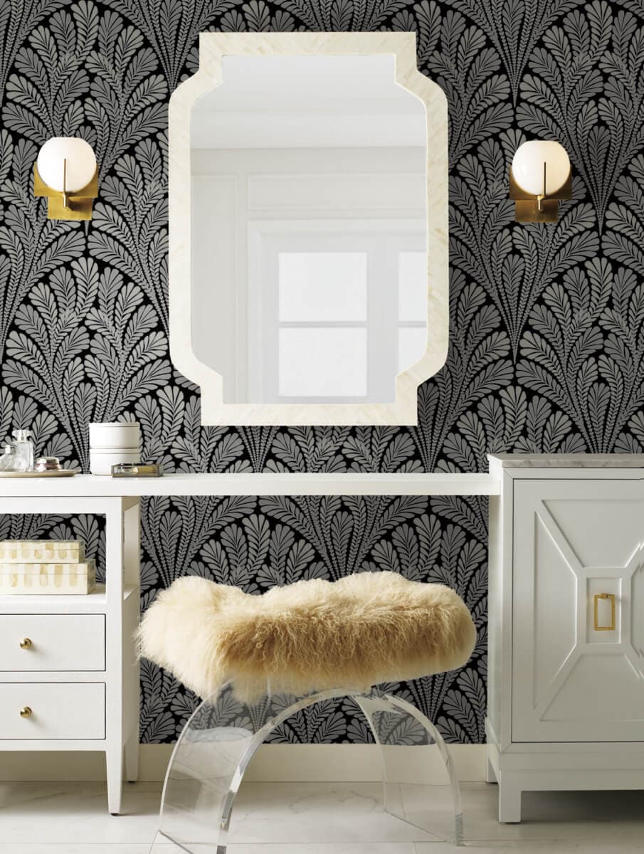 Fan shaped feathery pinnate leaves define the graceful arch of pattern Shell Damask, accented by the addition of modern metallic and pearlescence.From the Damask Resource Library. As the most elegant constant in classic design, damasks continue to influence trend and inspire ideals of beauty in modern luxury interiors. Features: Prepasted