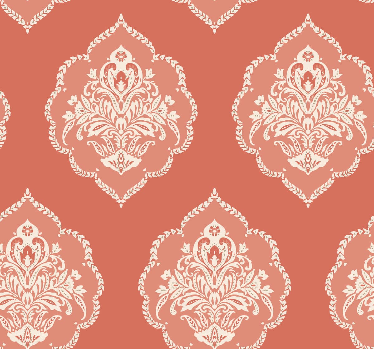 Signet Medallion Wallpaper in Coral from Damask Resource Library