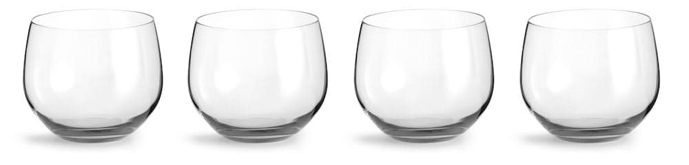 Drinks glass in a luxurious, modern style. Rounded shape with a 35 cl capacity. Mouth-blown glass. Each color is sold as a set of 4. Size: 8x8x8cm, 35cl Material: Mouth-blown glass