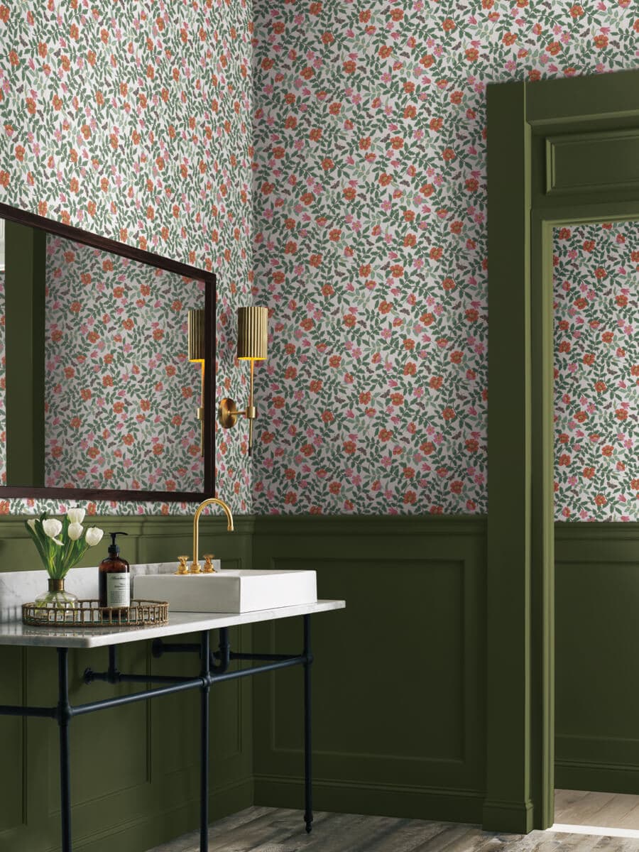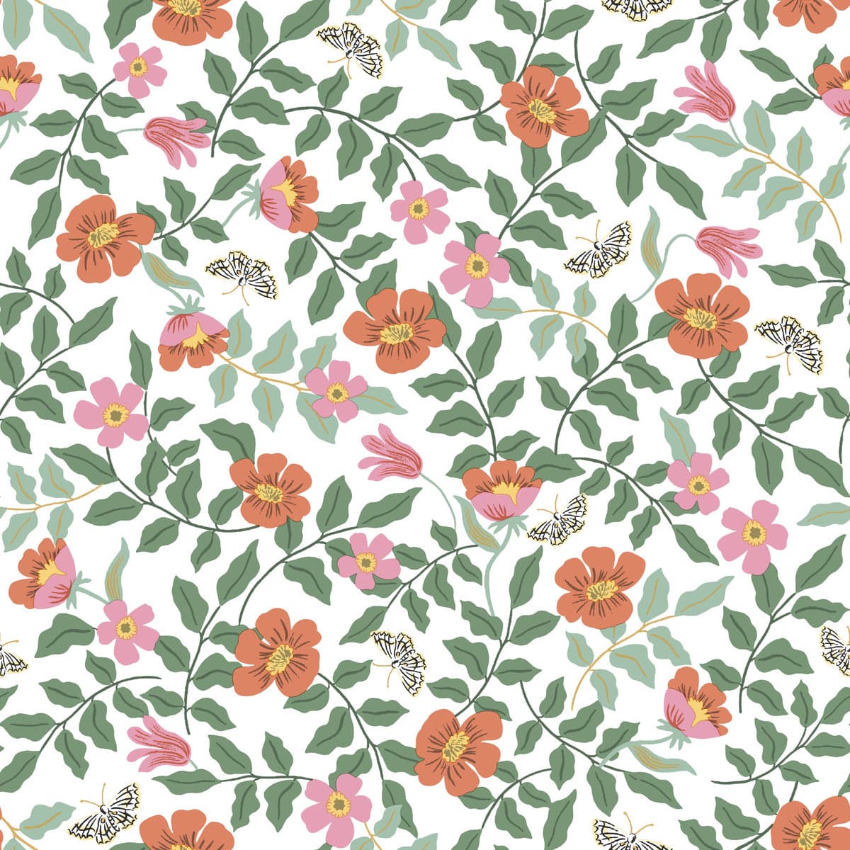 The Primrose print features fluttering butterflies and colorful blooms surrounded by delicate vines and leaves for a charming wallcovering.The Rifle Paper Co. Peel & Stick collection is a bright and beautiful way to make a statement at home. Featuring their signature florals, elegant linework, and charming illustrations, these wallcoverings are designed to bring unexpected beauty into the real world. Substrate: Non-Woven Peel & Stick Features: Washable