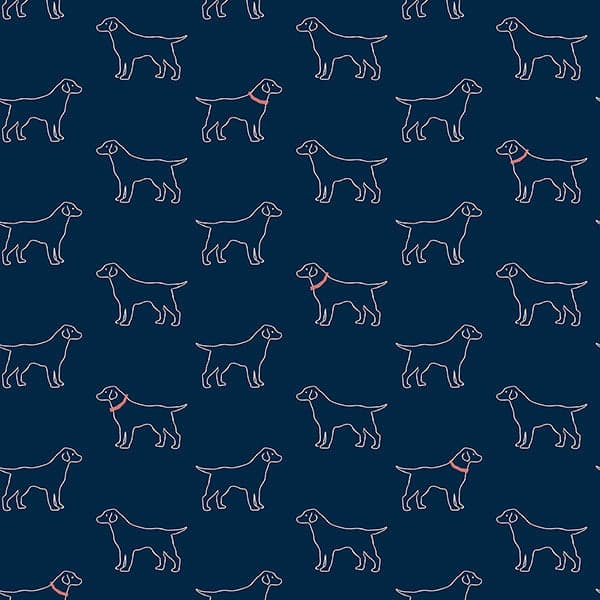 Bring man's best friend into your interior décor with this charming wallpaper! The rich navy backdrop is decorated with simple white outlines of labradors, some with red collars and some without. Yoop is a prepasted, acrylic coated paper wallpaper.Fill your home with warmth and charm with the stylings of the Flora & Fauna collection. Features an array of farmhouse staples, homespun geometrics, and whimsical animal and botanical designs. Material: Acrylic-Coated Paper Features: Prepasted