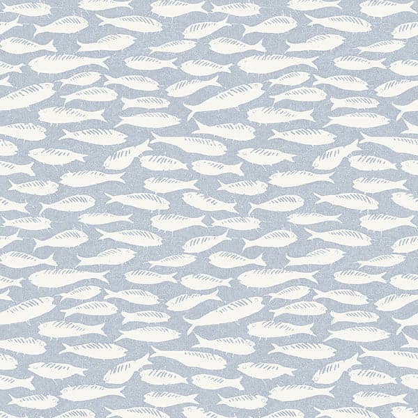 Sample Nunkie Denim Sardine Wallpaper from the Flora & Fauna Collection