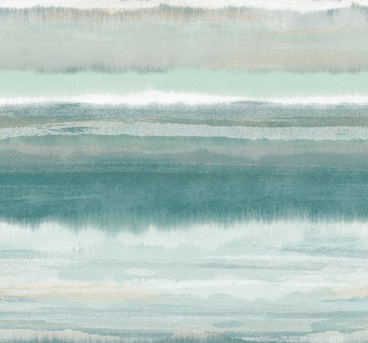 Sample Watercolor Stripe Wallpaper in Calypso Green and Hemp