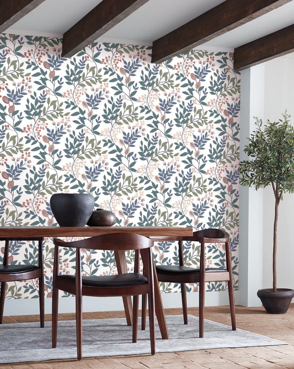 The windswept cliffs and outdoor living of the Mediterranean inspire the wild berries, some touches of metallic, leaves and underbrush of pattern Eden Retreat. From the Mediterranean collection. Sand and sea, terracotta arches, and olive groves characterize a perfect paradise of light and luxury captured along the windswept coastlines of the Mediterranean. Features: Prepasted
