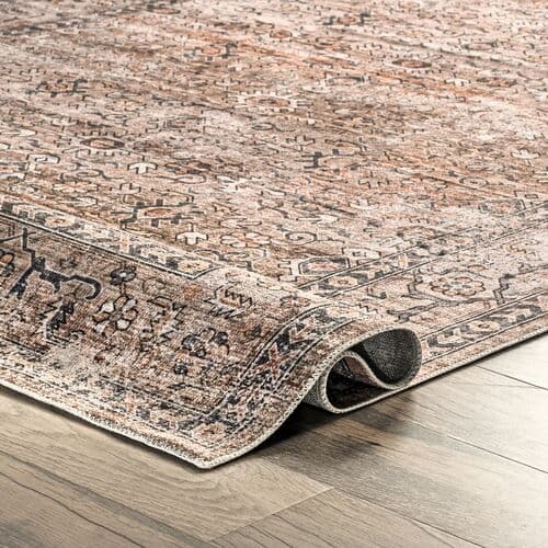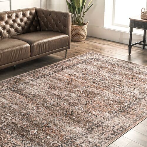 It's hard to believe this rug is machine washable, and your guests won't notice either. The intentional color variations mimic the appearance of high-quality carpets aged over time, enhancing the Persian-inspired design's elegance. A rug pad is recommended to prevent slipping.
