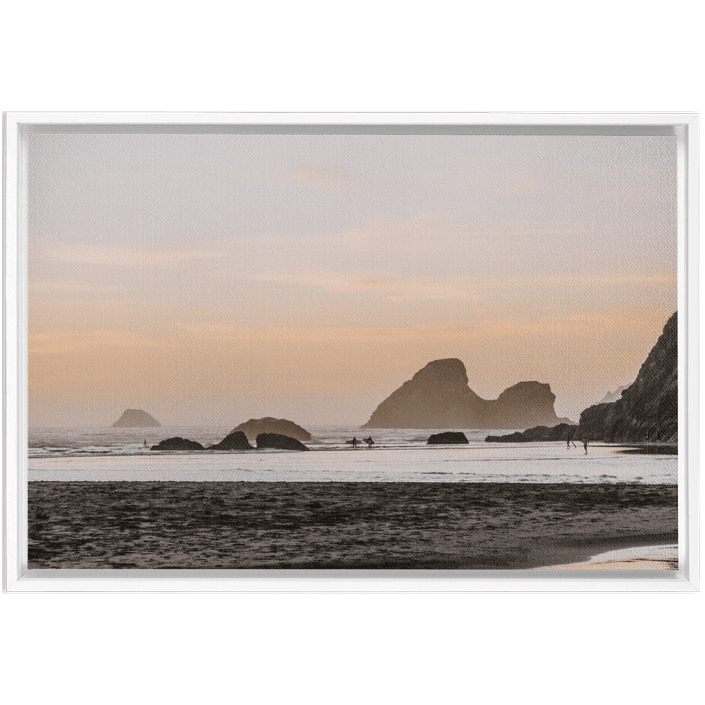Ready to hang canvas print media is acid free with a medium texture and scratch-resistant finish. Solid wood frame, fully finished backing, with corner bumpers for level hanging and to protect your wall. Easily wipes clean with a damp cloth.Size reflects print size, frame adds an additional 2" to length and width