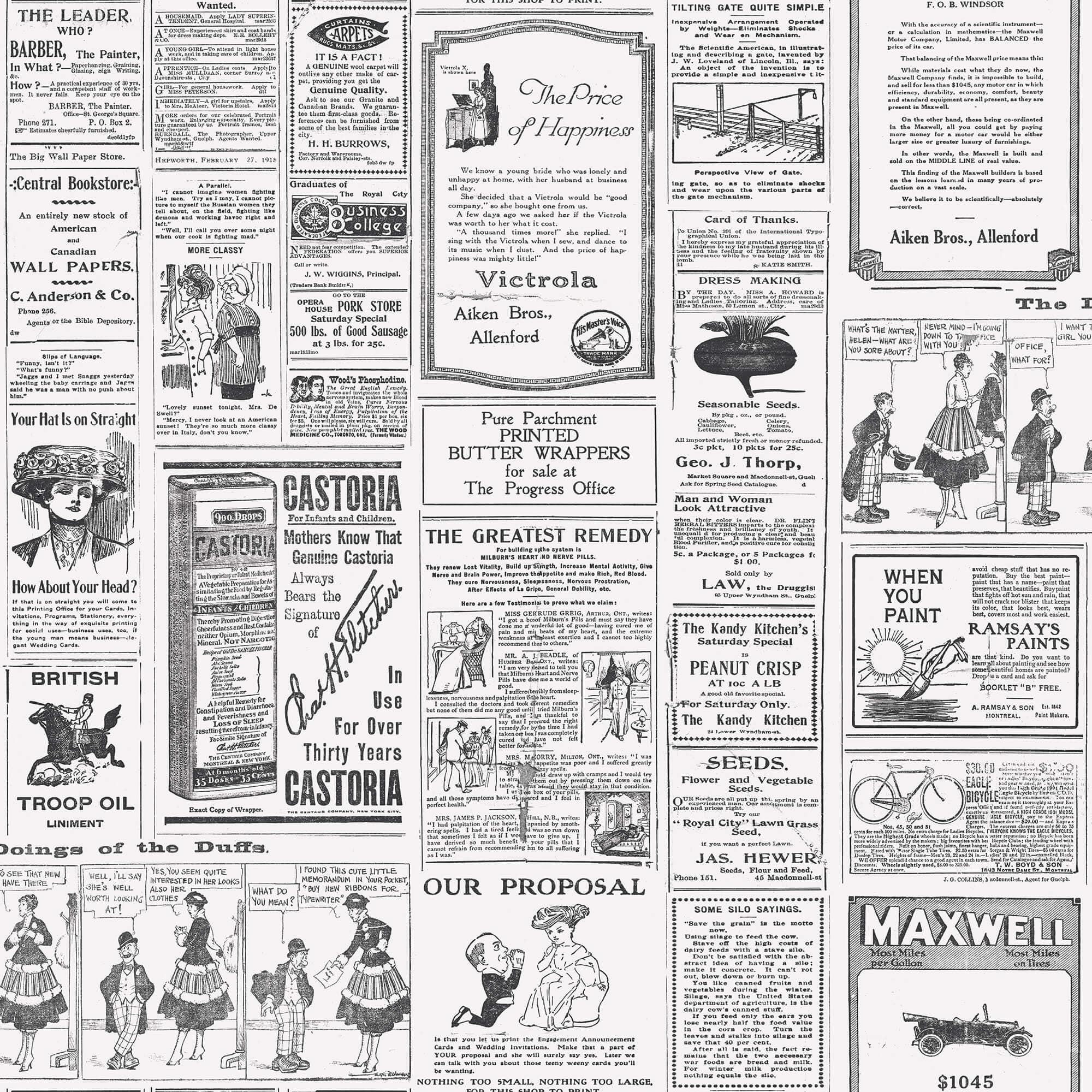 Newspaper Black/White Wallpaper from the Just Kitchens Collection