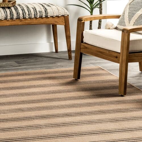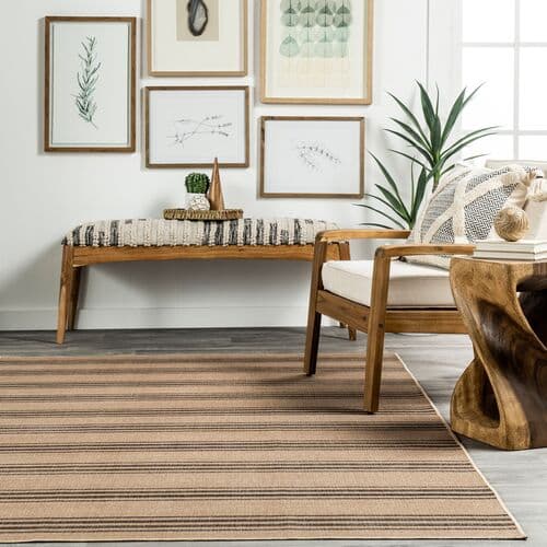 Lavina Striped Easy Jute Machine Washable Area Rug - Brown - Brown | Floor Covering, Carpet, Mat, Area Rug