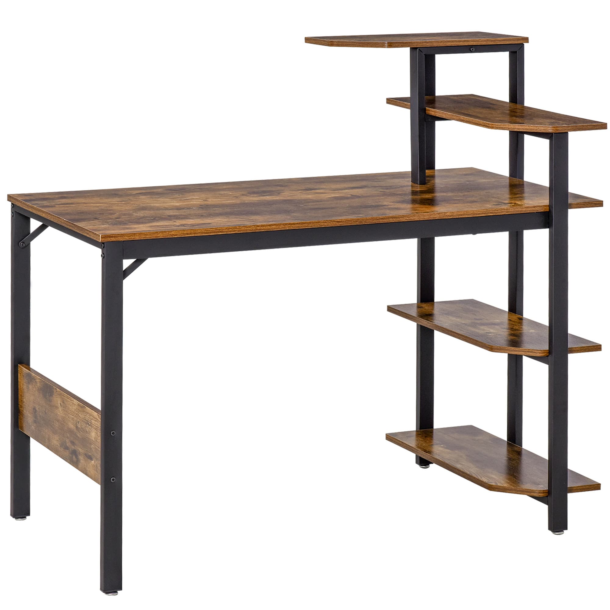 Enhance your home office productivity with a computer desk that combines style and functionality. The HOMCOM desk provides a spacious tabletop suitable for a laptop or monitor, along with a 4-tier open bookshelf for storing books, plants, documents, or other office essentials. Its rustic wood grain design adds charm and complements most home decor styles. Upgrade your workspace with this HOMCOM writing desk.