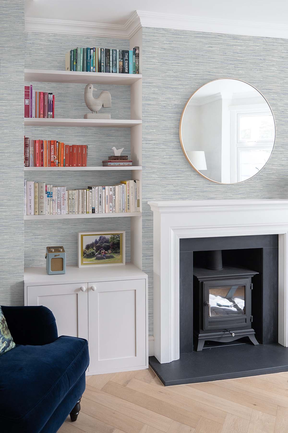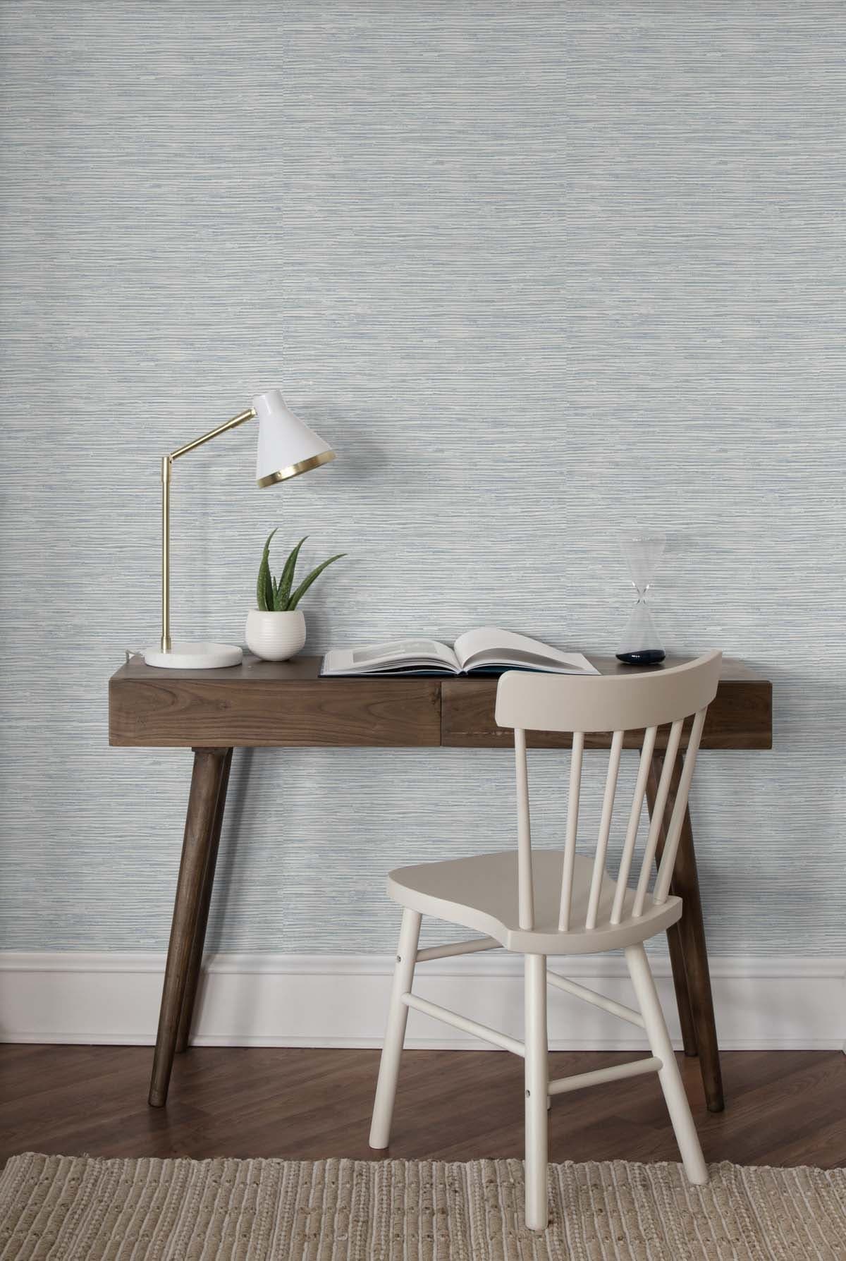 Cyrus Faux Grasscloth Dove Grey & Bluestone Peel-and-Stick Wallpaper