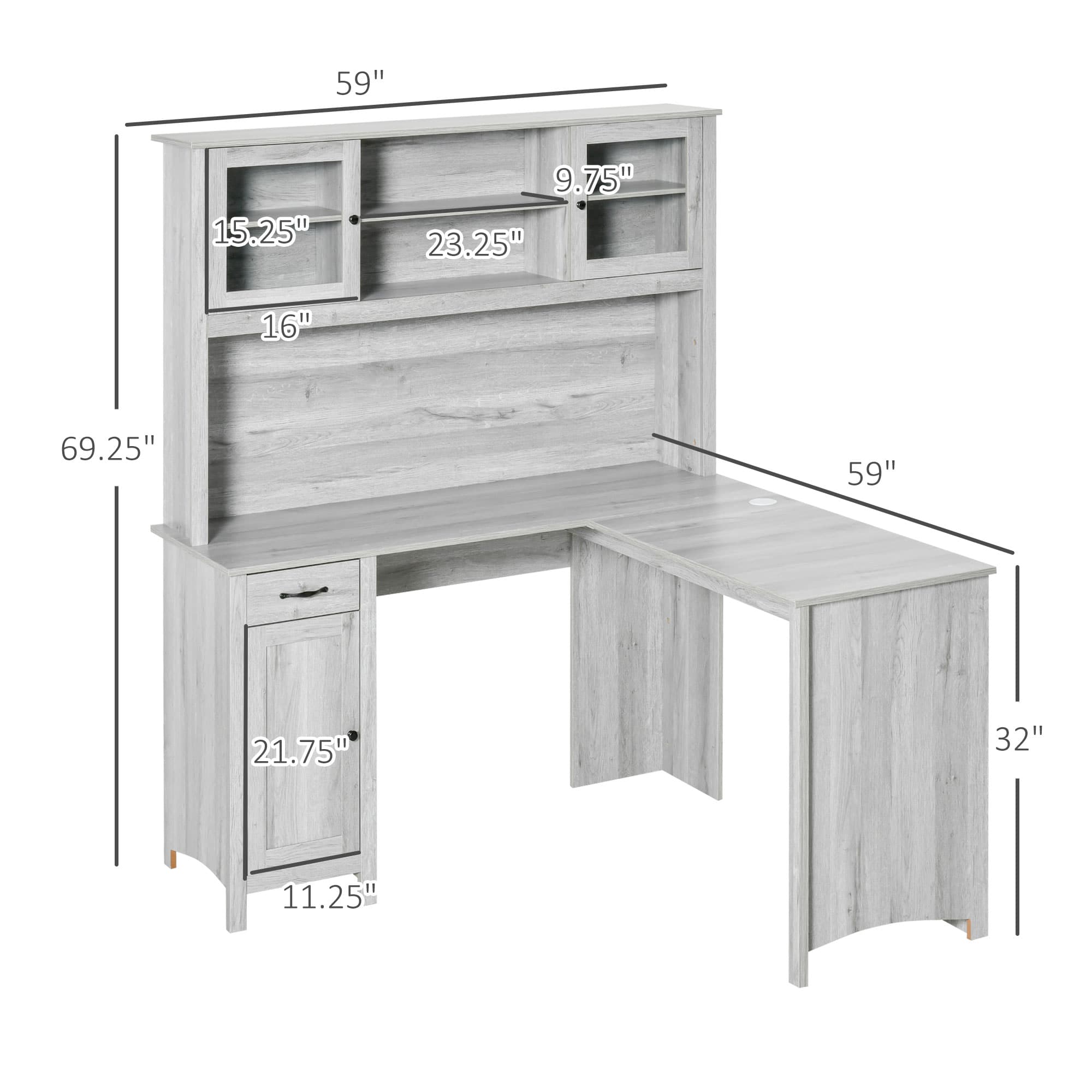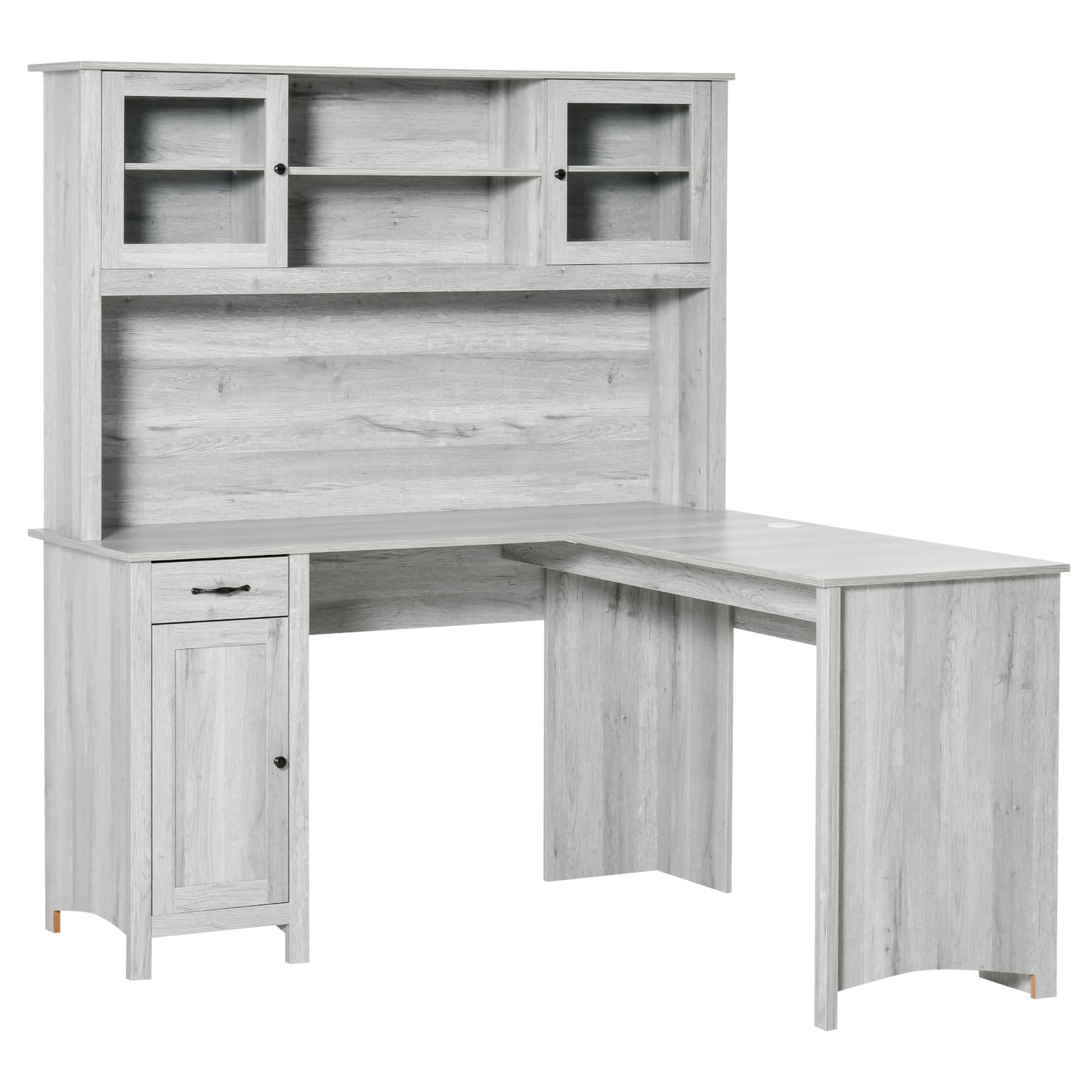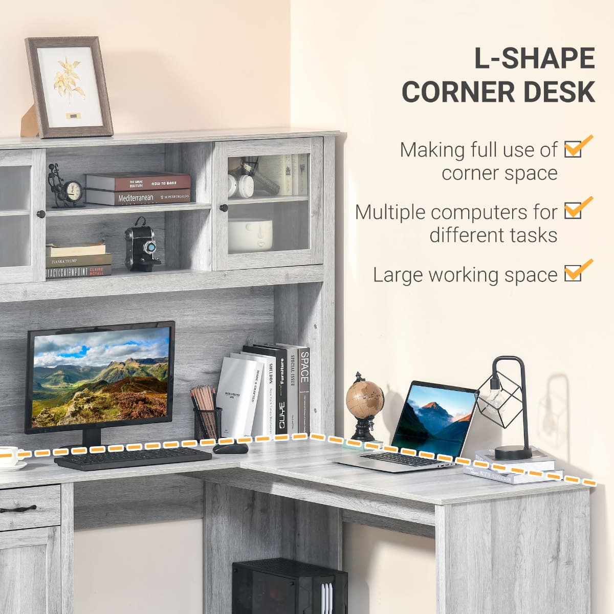 HOMCOM Gray Corner Computer Desk with Drawers Hutch Home Office Desk Study Workstation Table Storage Cabinets Shelves | Aosom.com