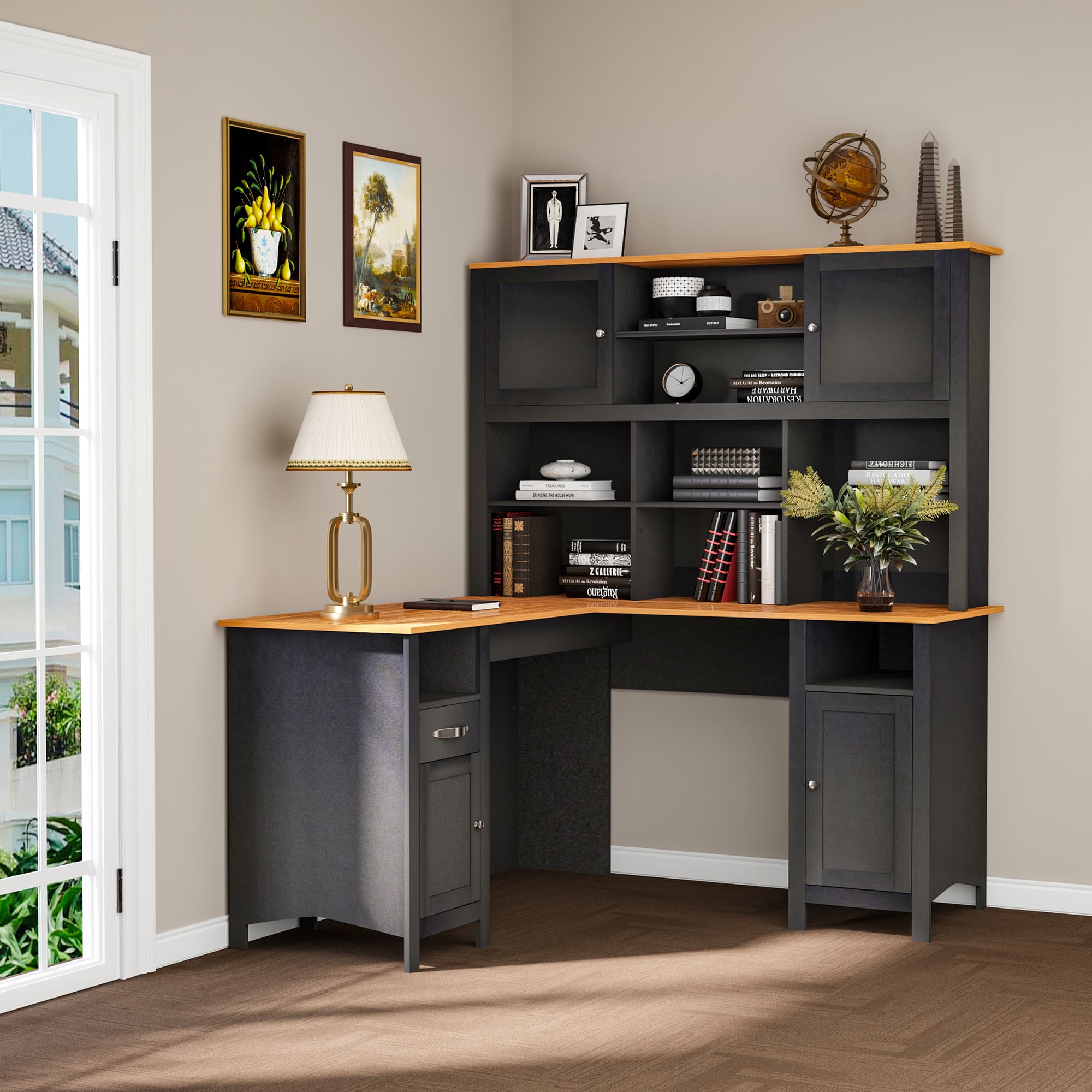 HOMCOM Computer Desk L-Shaped Corner Table Study Table Multi-Usage Laptop Desk with Ample Storage, P2 MDF and L-Shaped Design, Black