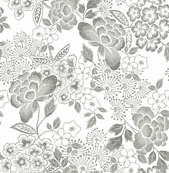 Irina Grey Floral Blooms Wallpaper from the Happy Collection