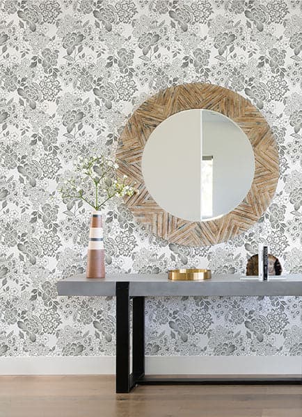 The timeless romance of this chic floral wallpaper will beautify both your walls and your home! Inked in shades of grey on crisp white, a medley of large and small flowers burst into bloom. Irina is an unpasted, non woven wallpaper.Welcome high-spirited yet sophisticated style to your home with the Happy Collection. This upbeat and eclectic collection celebrates bright and airy colors, cheerful florals, whimsical geometrics and captivating accents. Material: Non-Woven Features: Unpasted