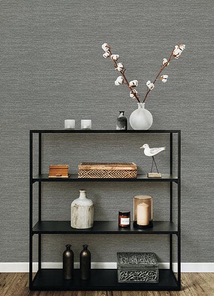 Malin Grey Faux Grasscloth Wallpaper from Hannah Collection