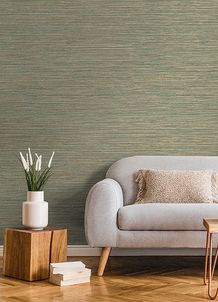 The sophisticated look of grasscloth gets a modern update with this faux grasscloth design. This utterly chic color palette features a blend of light greens accented by metallic copper, bringing the perfect patina to your walls! Alton is an unpasted, non woven wallpaper.The Fusion by Advantage collection explores modern and dynamic takes on classic textures. This collection features a variety of faux grasscloths, industrial designs, and chic, dimensional accents. Material: Non-Woven Features: Unpasted