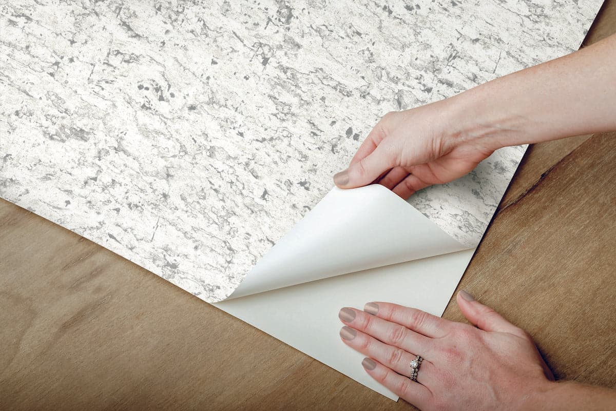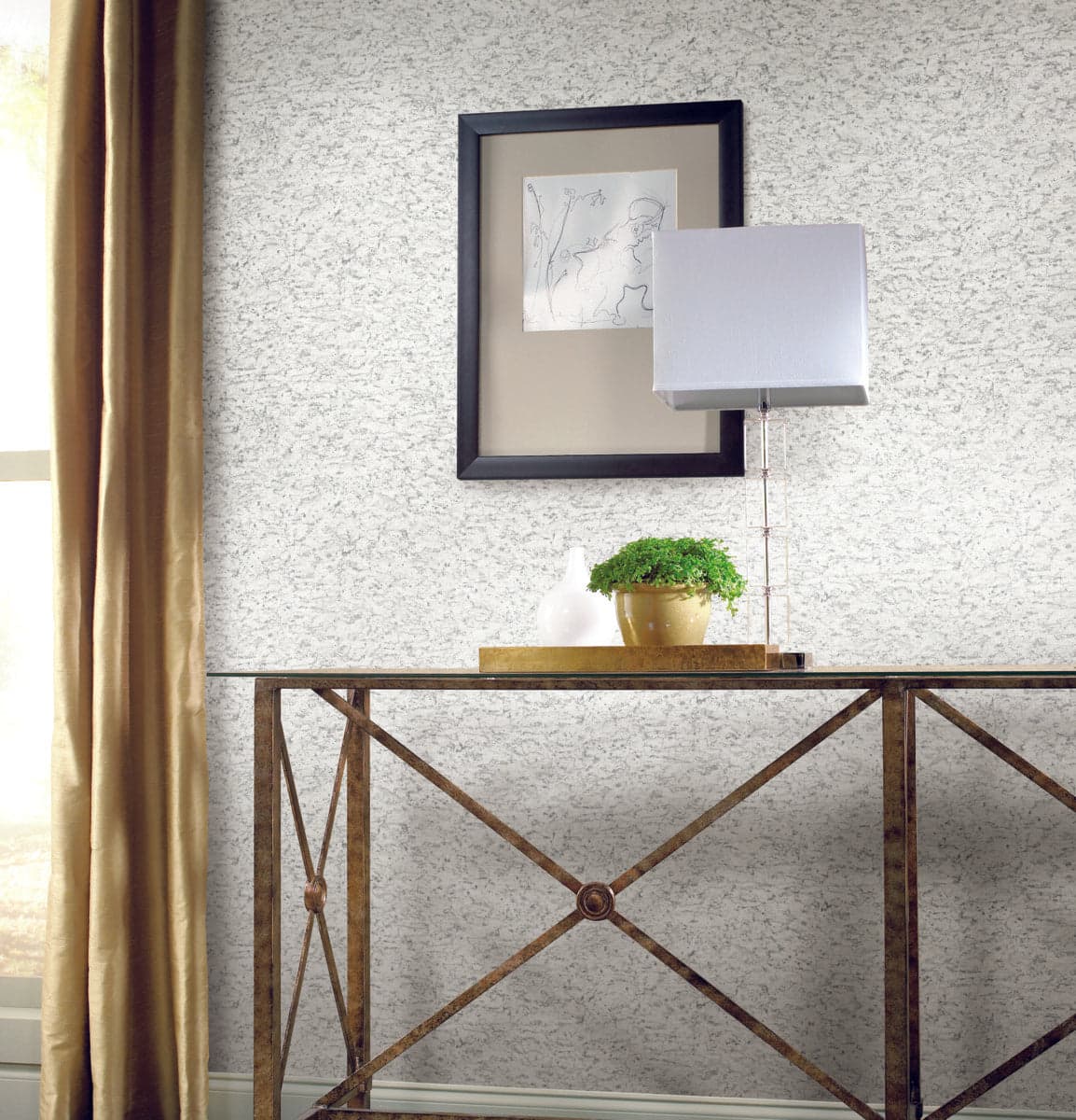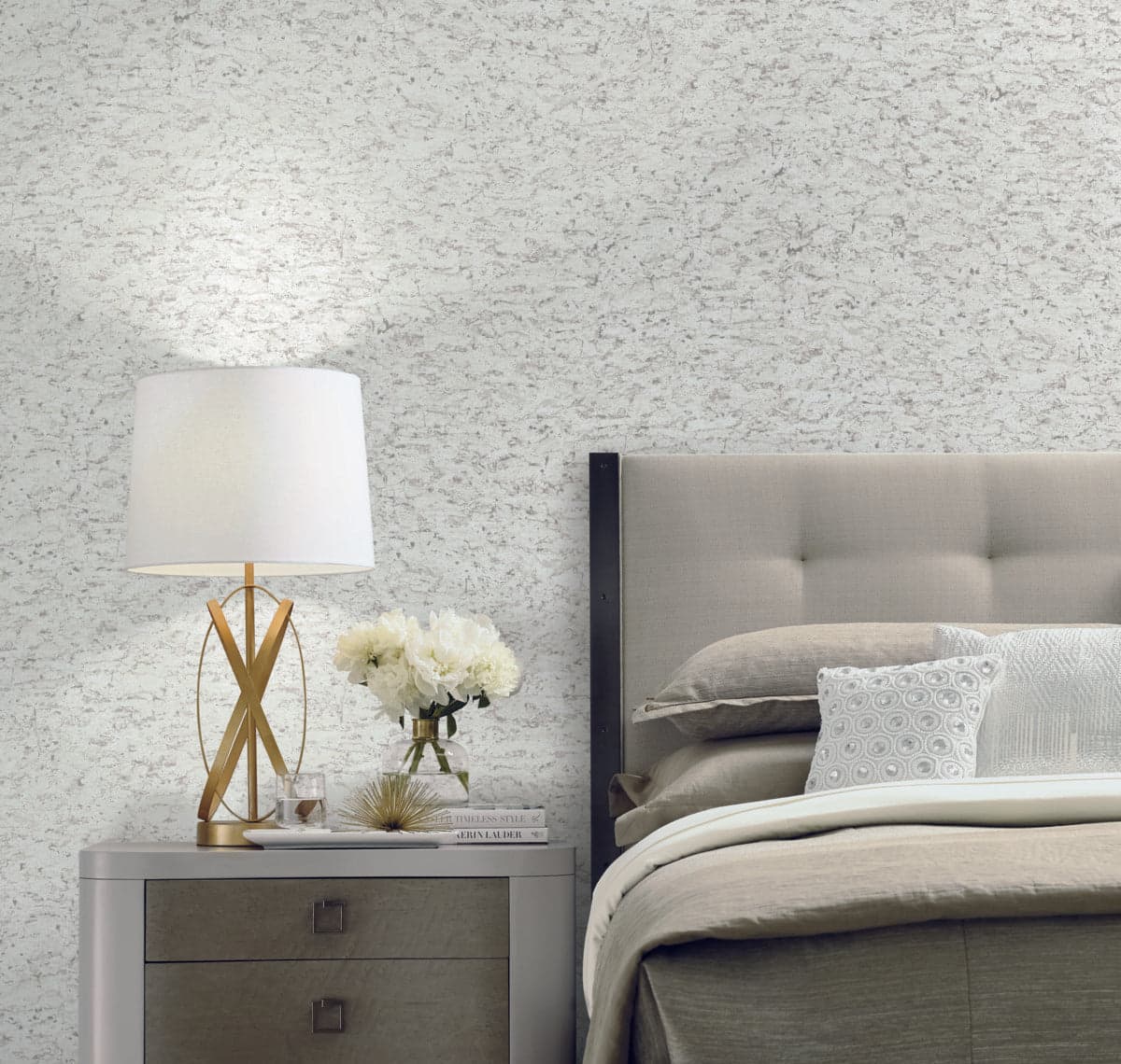 Touches of lustrous metallic elevate the trompe l'oeil effect of the pattern Shimmering Cork, shown in powder white with pewter metallic. This white shimmering cork peel & stick wallpaper measures 20.5 inches wide by 20 feet long, covering approximately 34.2 square feet per roll. The ultimate pattern inspirations for architectural finishes, motifs, and textures as found in nature. Cerused woodgrain, distinctive woven grass, cork, stone, clay, marble, and mother of pearl bring warmth and depth to surrounding spaces with familiar comfort.Easy to hang and completely removable, our Premium Peel and Stick Wallpapers are eco-friendly, vinyl-free and printed with water-based inks on matte finish non-woven paper with adhesive backing. Material: Non-woven peel and stick Features: Washable