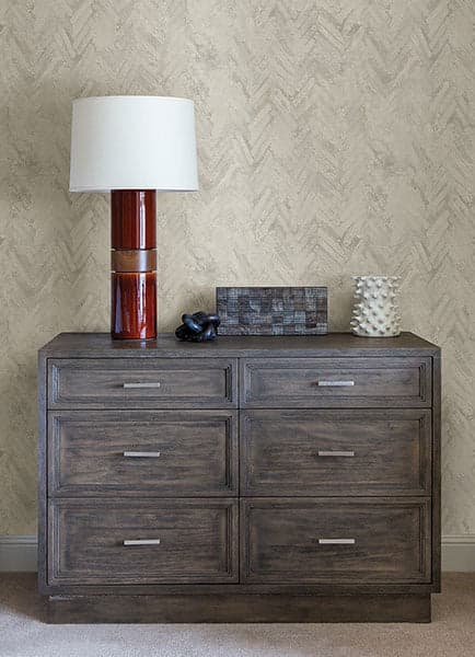 Amesemi Off-White Distressed Herringbone Wallpaper from Lumina Collection