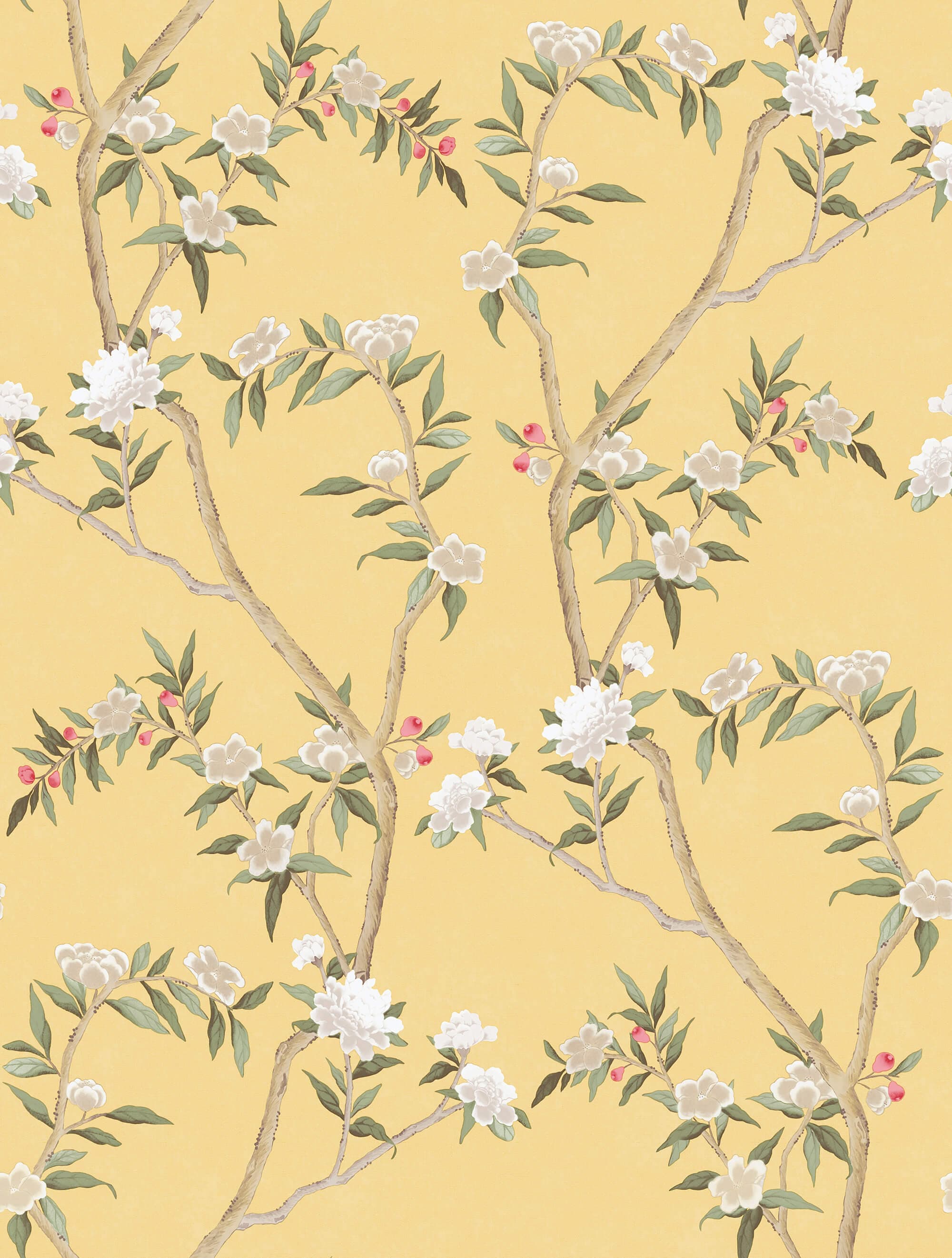 Sample Spring Blossom Chinoiserie Wallpaper in Yellow