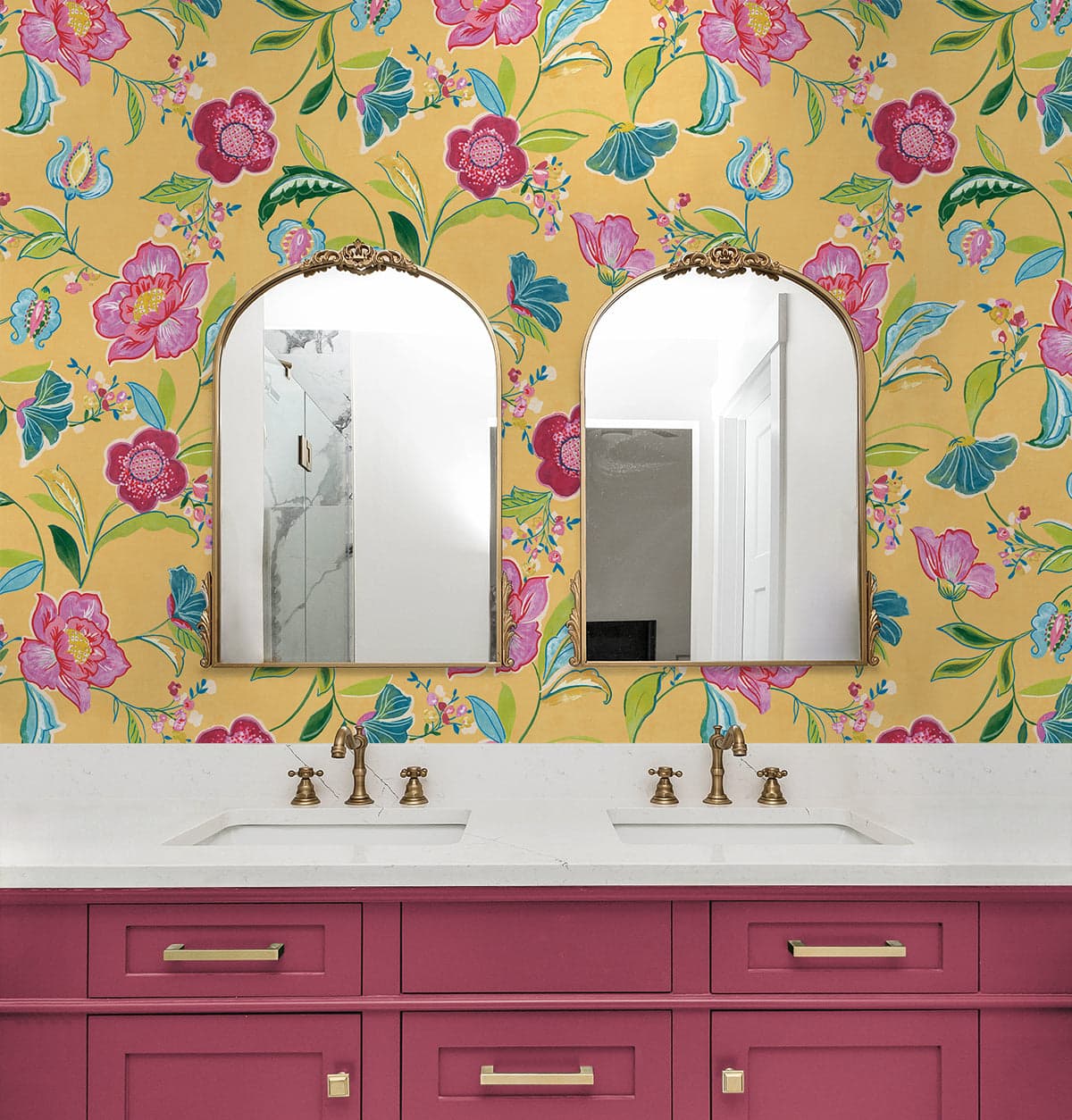 Painterly Floral Peel & Stick Wallpaper in Cantaloupe