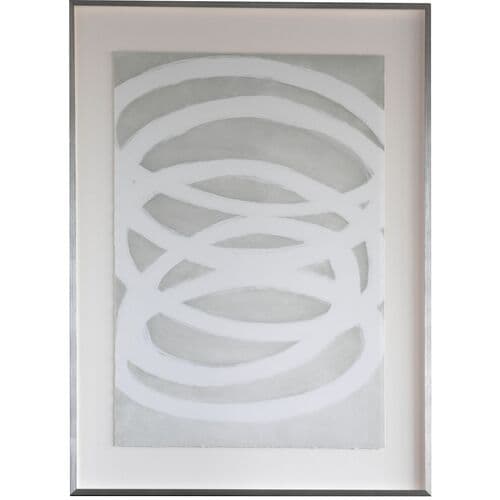 Interlocking ovals evoke cyclone imagery while promoting a sense of calm. Printed on heavy cotton rag paper, the piece comes framed and is ready to hang.