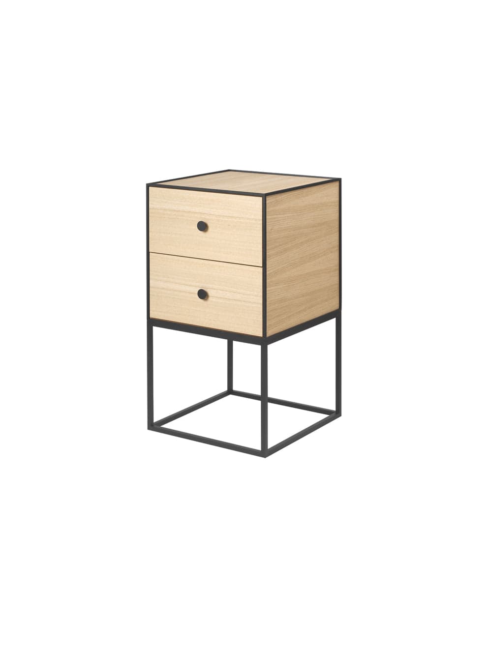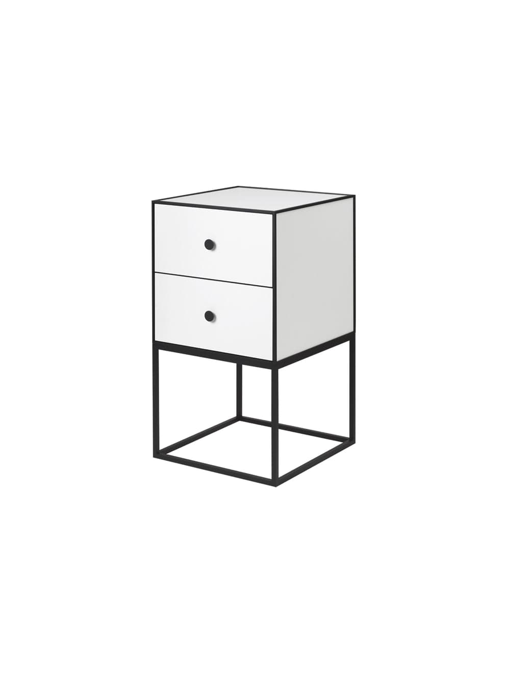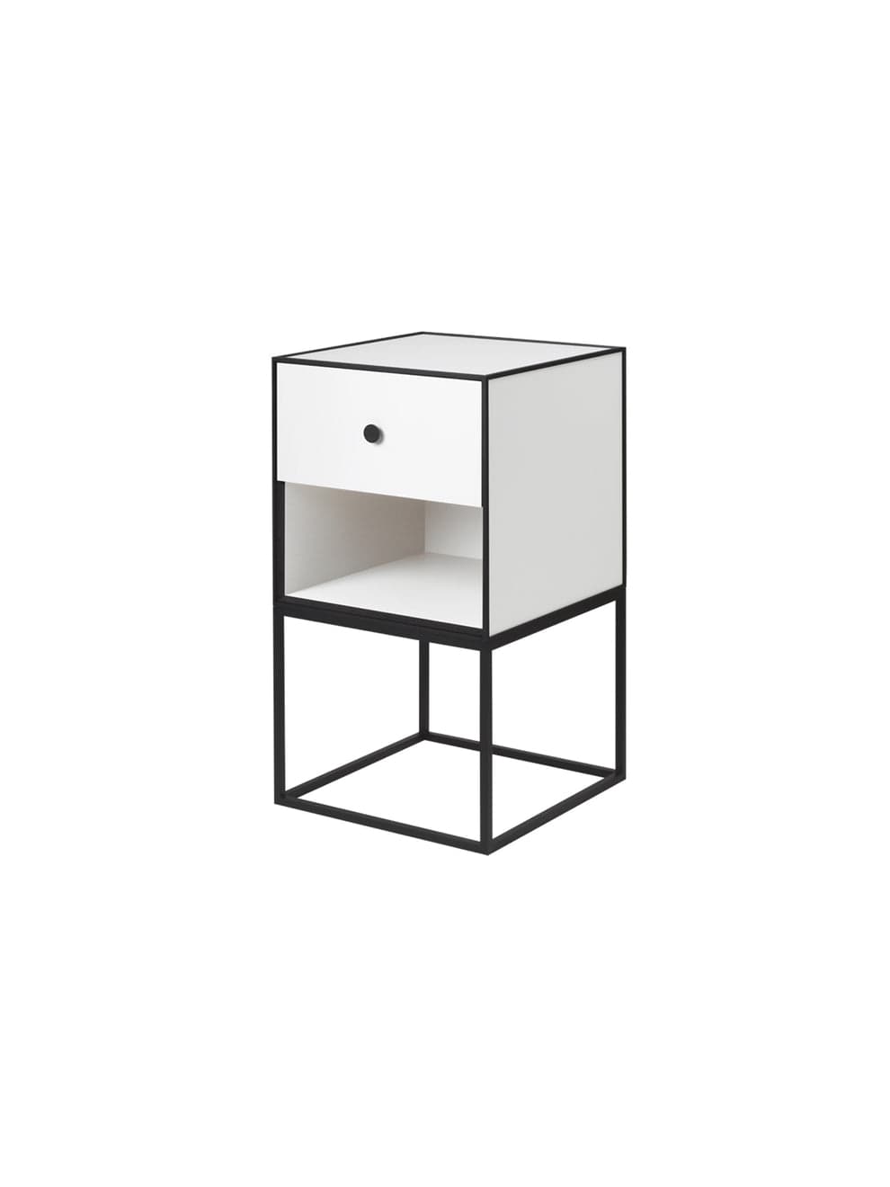Frame Sideboard is a flexible storage solution consisting of a square module in a cubistic frame with a cubistic black metal base. The simple storage system is inspired by the Kubus candleholder by Mogens Lassen, based on strict mathematical formulas and designed with the greatest precision. Whether standing alone or as a combination of modules, Frame Sideboard is a beautiful and functional storage solution. Place Frame Sideboard next to the sofa or bed, or use it as a classic spacious bookcase. The Frame module can also be separated from the cubistic Base for Frame and instead hung on the wall if your home needs a new touch, or to cater for changing storage needs. Frame Sideboard is available in different sizes and with one, two or three drawers, featuring a soft-close system and hidden tracks. The entire Frame collection is manufactured and assembled by hand in Denmark. It is a collection that truly unites functionality, quality and aesthetics. Product Overview Available Finishes: White Black Stained Ash Oak Dark Grey Light Grey Sand Dimensions: 13.8"W x 13.8"D x 24.8"H 19.3"W x 16.5"D x 28.3"H 30.315"H x16.535"W x 19.3"L Materials: Aluminum/MDF with Melamine Available Styles: 1 Drawer 2 Drawers 3 Drawers Weight: 30.46-34 lb SPECIFICATION SHEET