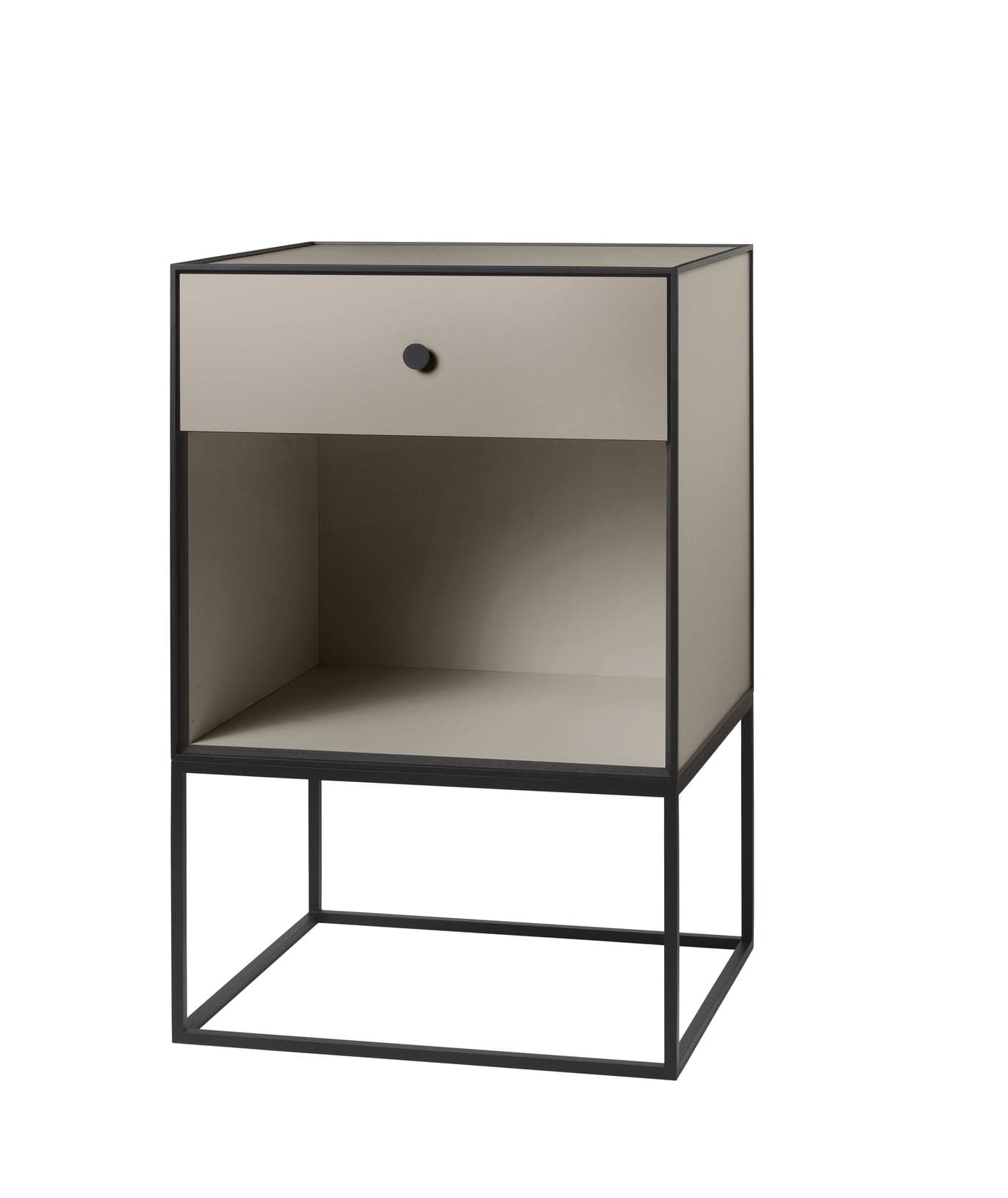 Frame Sideboard is a flexible storage solution consisting of a square module in a cubistic frame with a cubistic black metal base. The simple storage system is inspired by the Kubus candleholder by Mogens Lassen, based on strict mathematical formulas and designed with the greatest precision. Whether standing alone or as a combination of modules, Frame Sideboard is a beautiful and functional storage solution. Place Frame Sideboard next to the sofa or bed, or use it as a classic spacious bookcase. The Frame module can also be separated from the cubistic Base for Frame and instead hung on the wall if your home needs a new touch, or to cater for changing storage needs. Frame Sideboard is available in different sizes and with one, two or three drawers, featuring a soft-close system and hidden tracks. The entire Frame collection is manufactured and assembled by hand in Denmark. It is a collection that truly unites functionality, quality and aesthetics. Product Overview Available Finishes: White Black Stained Ash Oak Dark Grey Light Grey Sand Dimensions: 13.8"W x 13.8"D x 24.8"H 19.3"W x 16.5"D x 28.3"H 30.315"H x16.535"W x 19.3"L Materials: Aluminum/MDF with Melamine Available Styles: 1 Drawer 2 Drawers 3 Drawers Weight: 30.46-34 lb SPECIFICATION SHEET