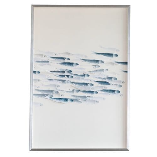 Paper-crafted koi fish decorate a giclée print featuring other aquatic life, providing an engaging depth. This piece is framed and ready to hang.
