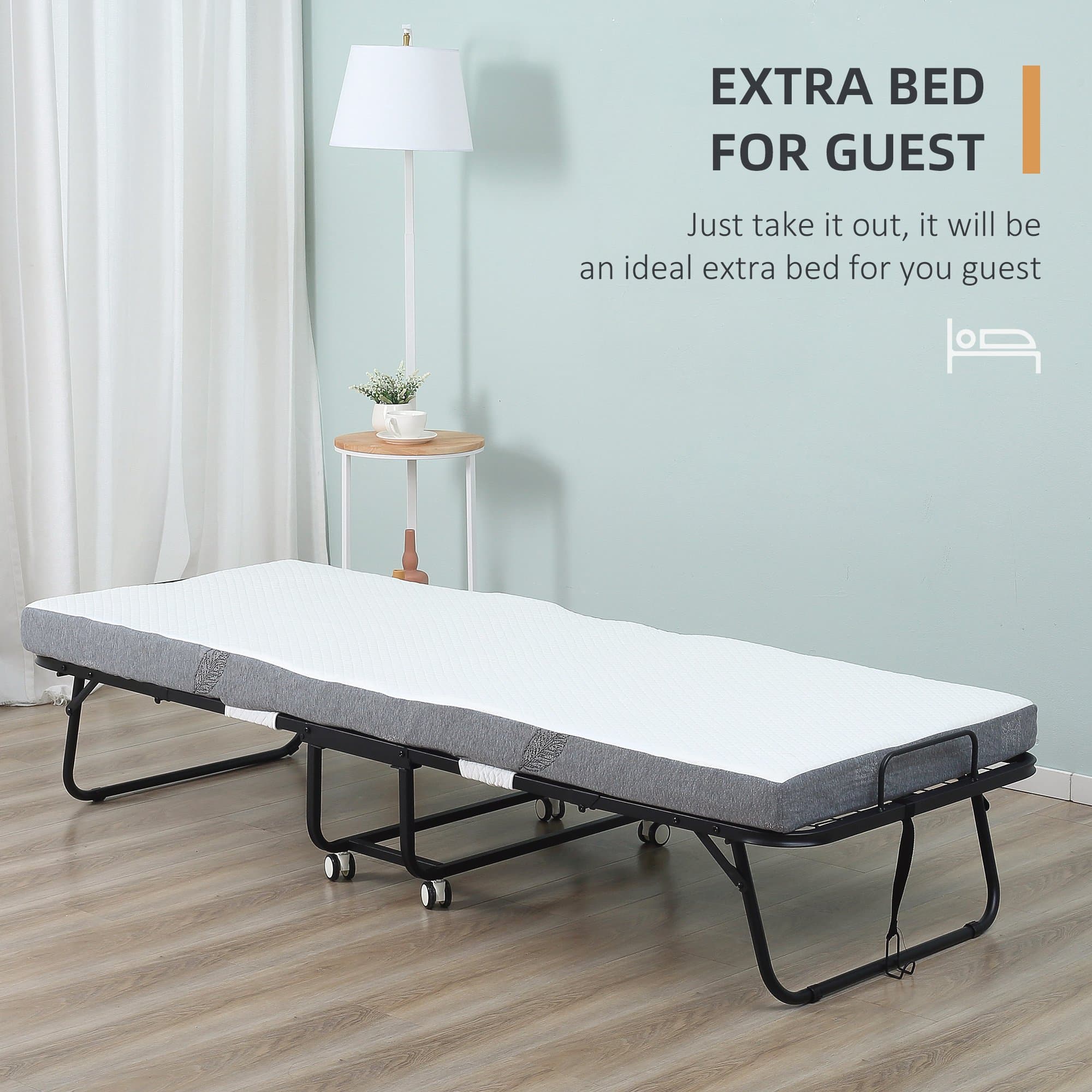 HOMCOM Folding Rollaway Bed with Memory Foam Mattress Portable White Guest Bed on Wheels | Aosom.com