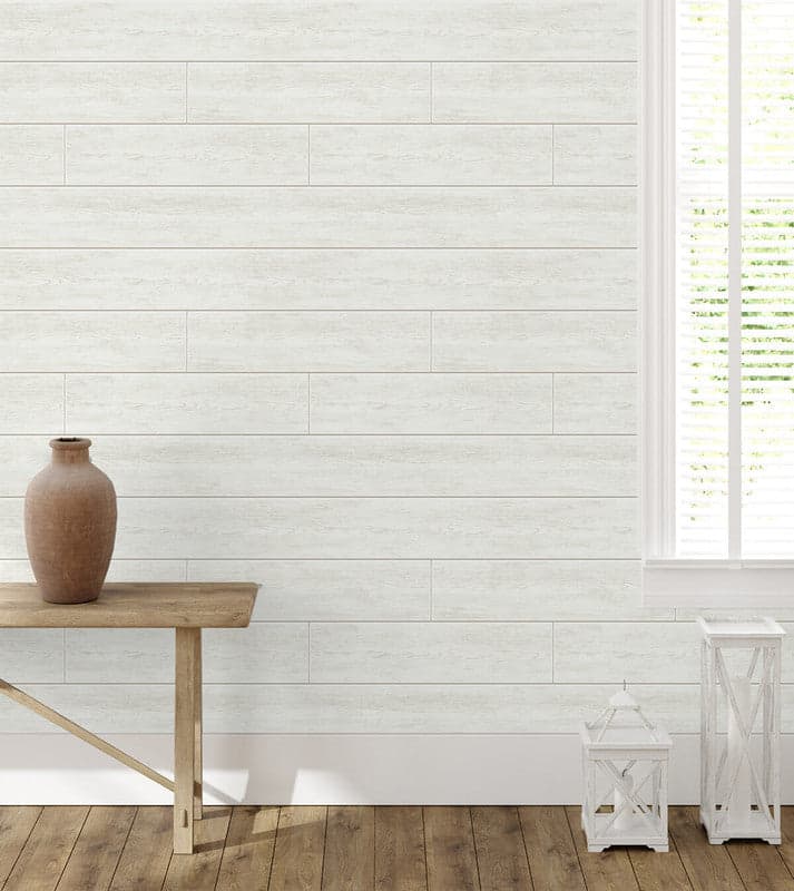 Coastal Faux Shiplap Wallpaper in Alabaster