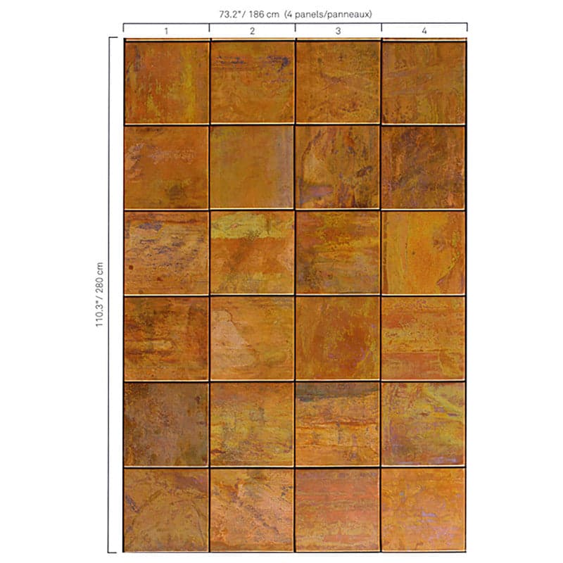 Sample Clay Tile Motif Wall Mural in Terracotta/Gold