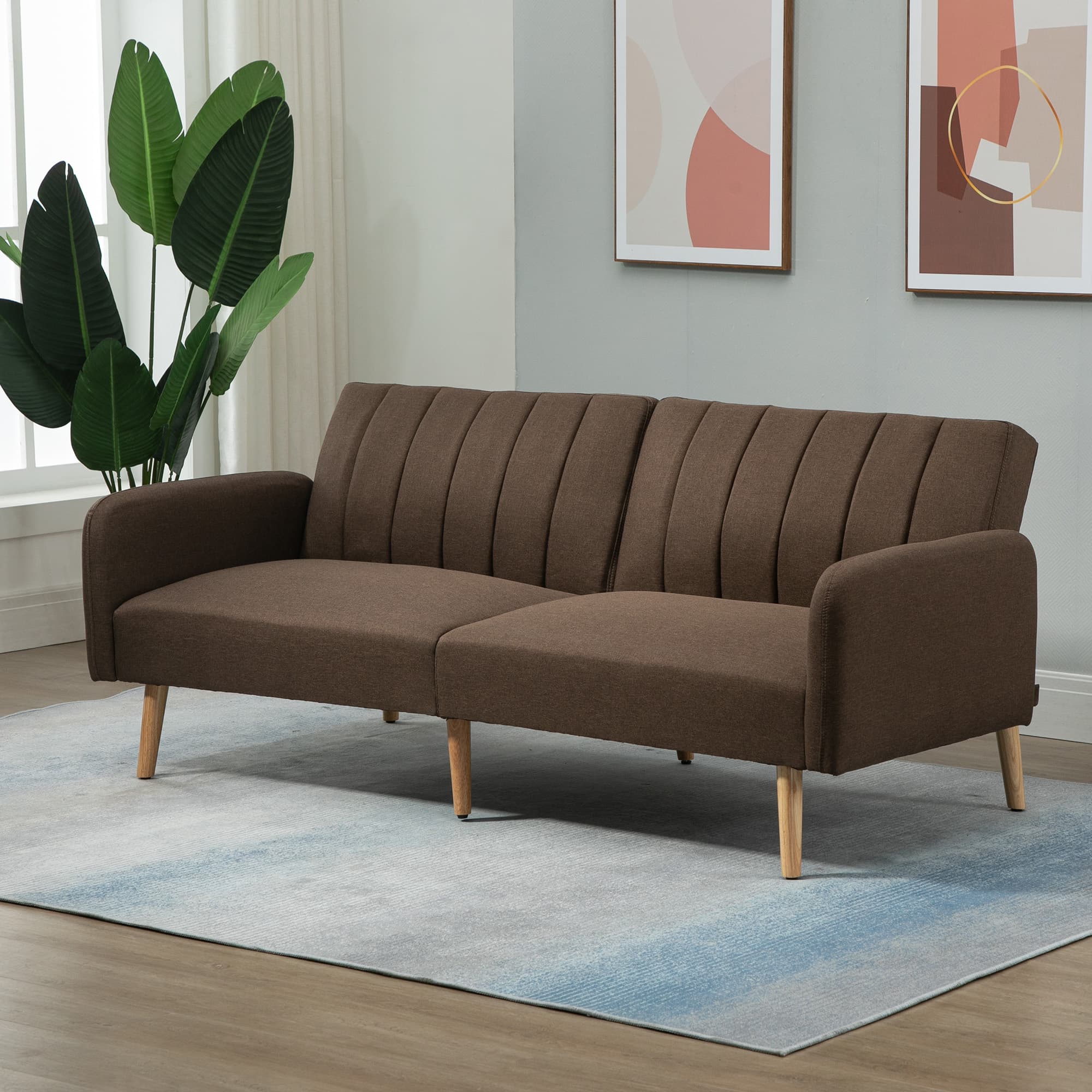 HOMCOM Convertible Futon Sofa Bed 2 Seater, Linen Upholstery, Adjustable Backrest, Brown for Living Room | Aosom.com