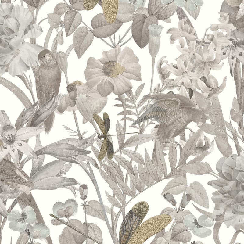 Sample Floral Foliage & Dragonflies Wallpaper in Taupe/Tan