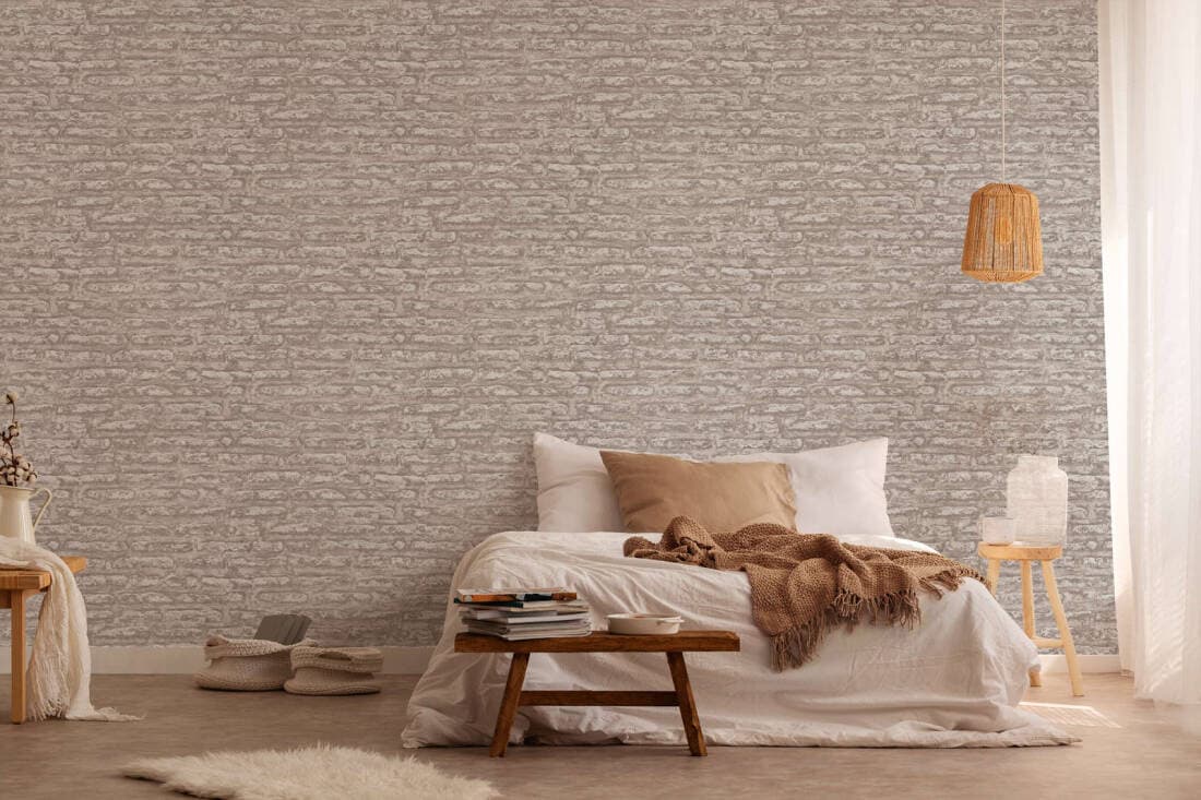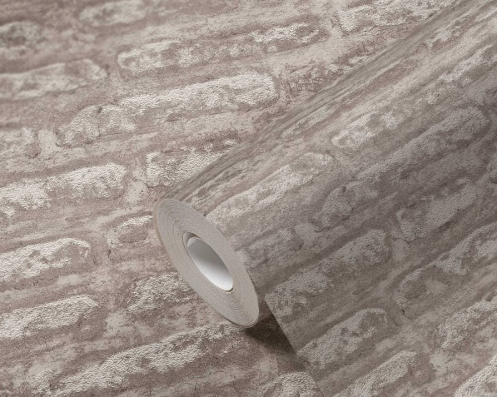 Light Brick Wallpaper in Taupe/Brown