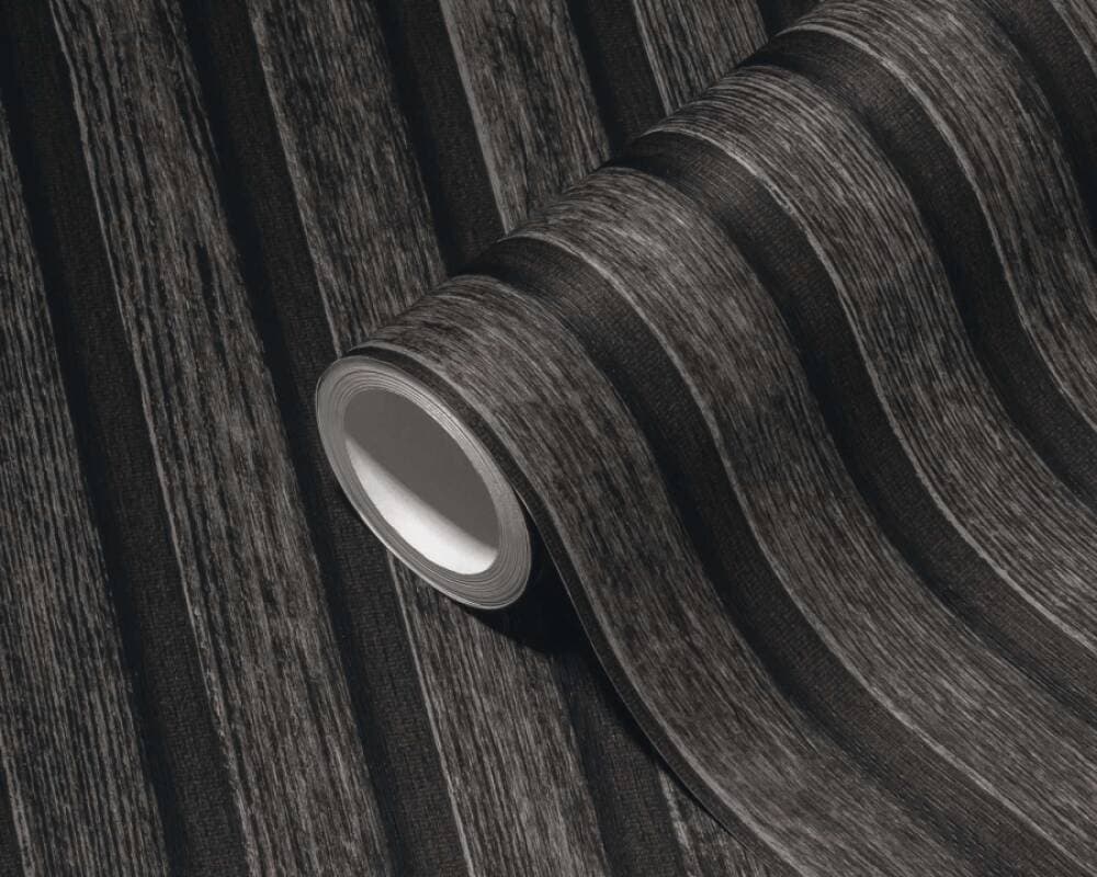 Wood Stripes Wallpaper in Dark Grey/Black