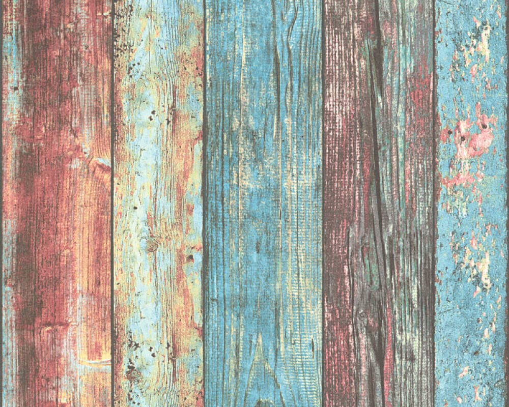 Sample Wood Deco Weathered Wallpaper in Blue Multi