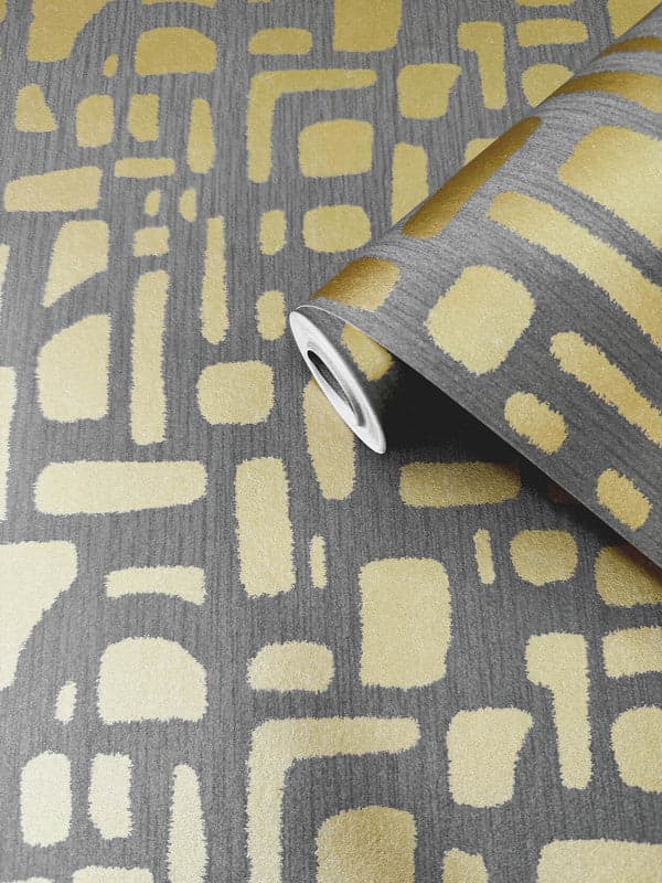 Chunky Geo Wallpaper in Gold/Silver Grey