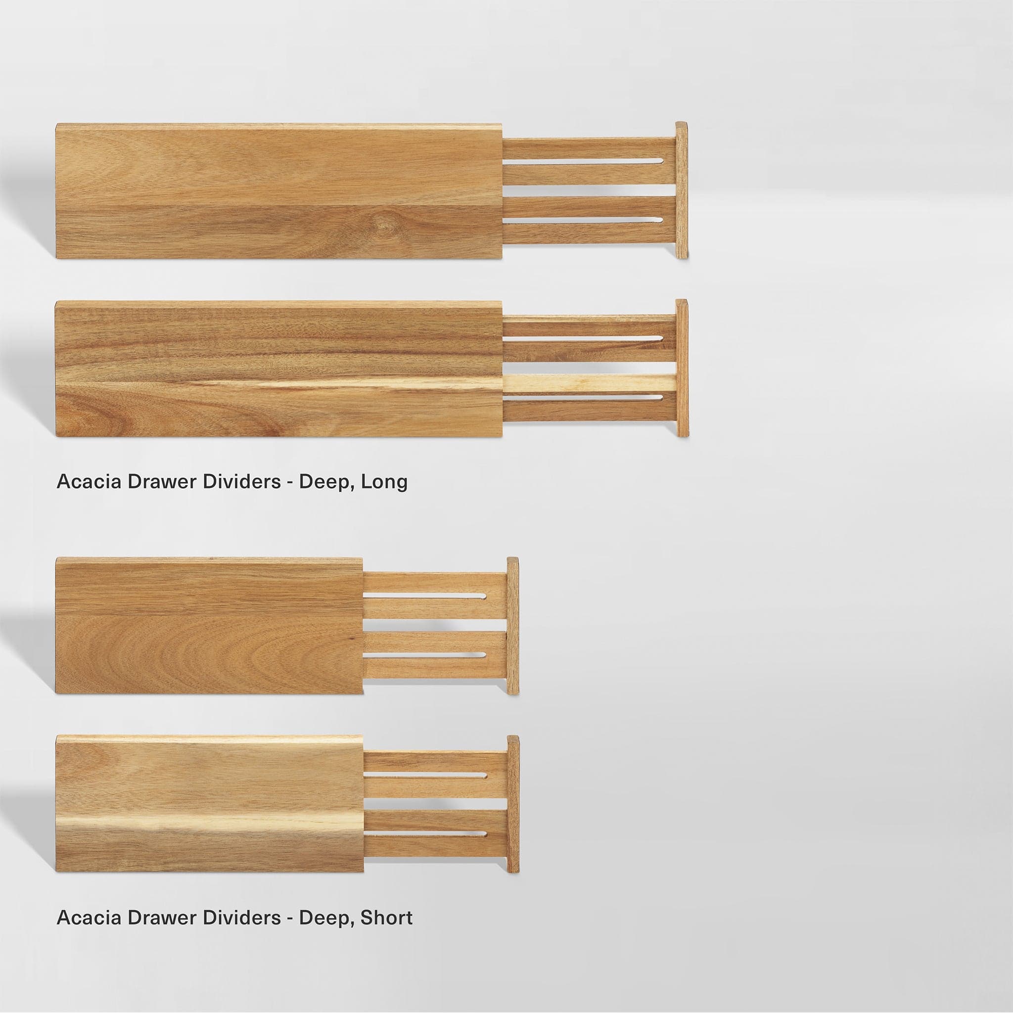 Turn chaos into calm in seconds with our Acacia Drawer Dividers. Available in four versatile sizes, the dividers define boundaries in any drawer—from kitchens to closets. Sold in sets of two.