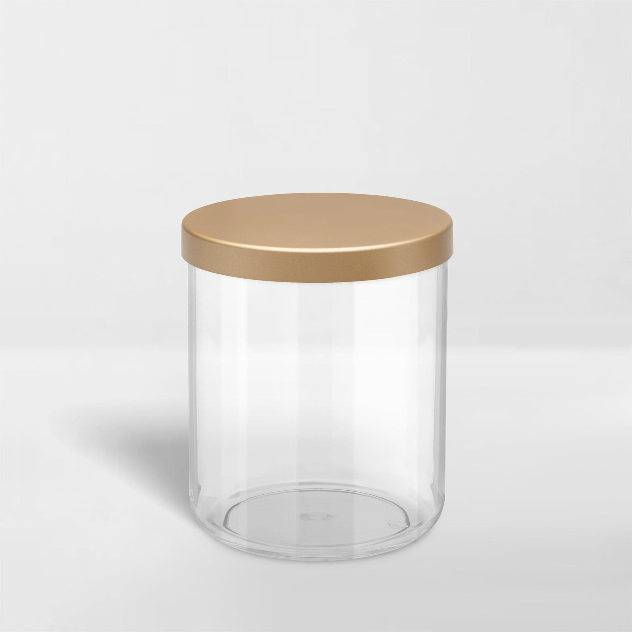 Our round, plastic Canisters allow you to always see what you have without the concern of little hands breaking glass. An airtight seal is achieved with our lids offered in black, brass, bone, and truffle to match our metal baskets. Each color is available in 4 different sizes accommodating anything from small treats to a bag of flour.