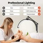Specifications Material: Aluminum Alloy, Iron Color: Black Style: Modern Plug: US Standard Lamp Type: LED Surface Treatment: Baking Finish Control Mode: Remote Control, Button Press Assembly Required: Yes Voltage: 110V Power: 36W Brightness: 0-100% Display Index: PA>90 Rotating Angle: 350 ° Adjustable Angle: 180 ° Luminous Value: 2000LM Color Temperature: 3200K~5600K Remote Control Distance: 10m/32.8ft Adjustable Light: 7 Level Color Temperature, 10 Level Brightness Gross Weight: 5.2kg/11.46lbs Net Weight: 4.5kg/9.92lbs Bracket Height: 1.32-1.9m/4.33-6.23ft Base Size: 3524cm/13.789.45in Expansion Bracket Length: 35-52cm/13.78-20.47in Lamp Diameter: 63cm/25in Package Size: 4528.515cm/17.711.225.9in.