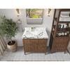 Modify your vanity space by adding Willow Collections Atlanta Teak Left Sink Bath Vanity in Dark Natural with Viola Night qt Top.
