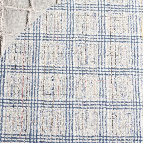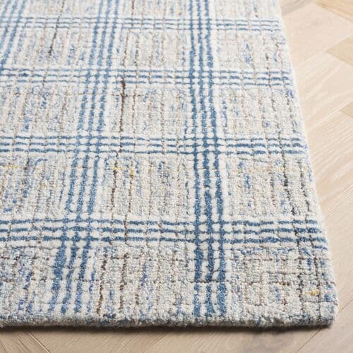 Discover the perfect blend of style and comfort with our hand-tufted area rug. Measuring 5-0 x 8-0, this medium rectangle rug brings a contemporary touch to any space. The calming blue and grey colors complement the geometric pattern, adding elegance and interest to your decor. Crafted from wool pile, this rug offers a natural softness underfoot, while its 3/8 inch height provides a cozy feel. Made with care in India, it reflects artistry and attention to detail. Ideal for living rooms or bedrooms, this rug enhances both modern and classic interiors, creating an inviting atmosphere.