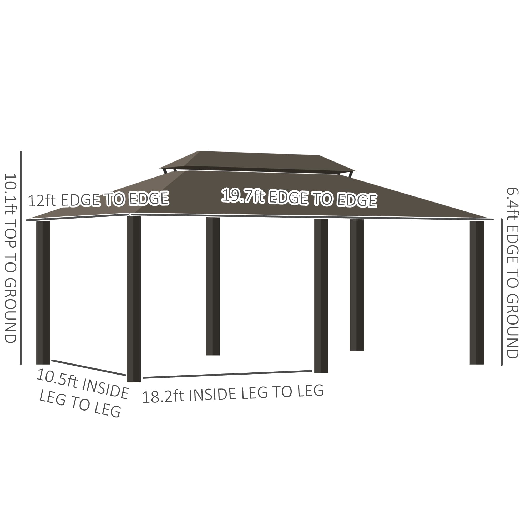 Outsunny 20x12 ft Patio Gazebo Netting Curtains 2 Tier Steel Roof Hardtop Rust Proof Aluminum Coffee | Aosom.com