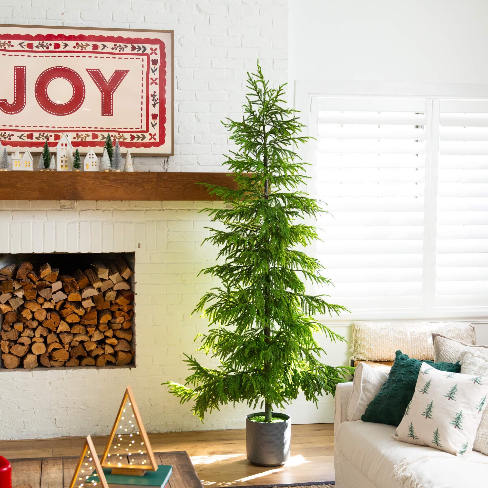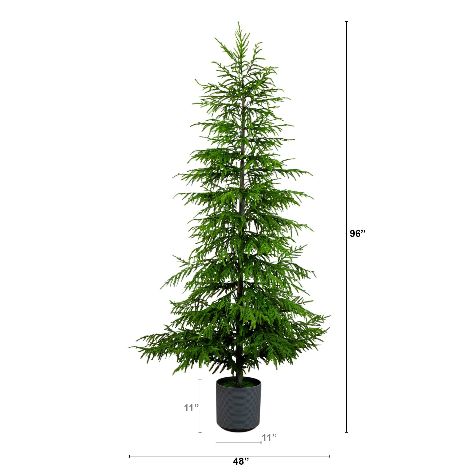 Evoke hints of the outdoors on bare surfaces with the help of this artificial norfolk pine tree. A gorgeous, lush tree inspired by the verdant Pacific coastline of New Zealand, it boasts lush, green foliage for a robust, full appearance, yet requires no maintenance at all. The branches are made of high-quality materials you'll notice the attention to detail in its natural look and real touch branches and are bendable to fit any space. Enhance the your space with the artificial Norfolk pine by adding twinkling fairy lights or colorful ribbon garlands. Standing 8-Ft from a nursery planter, create your dream home today by adding to a base of your choice. Enhance any space today no matter your decor style and spread cheer.