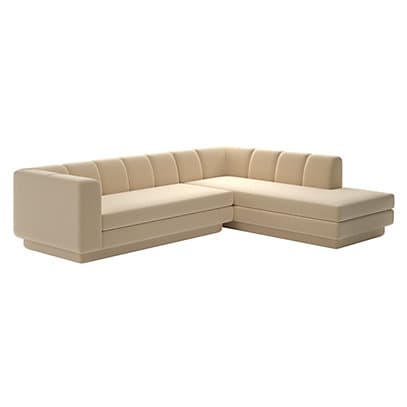 Taking stylistic nods from 1970s Italian design and the designers' own laid-back Southern California aesthetic, two-piece sofa by Lawson-Fenning has generous proportions for gathering and relaxing.