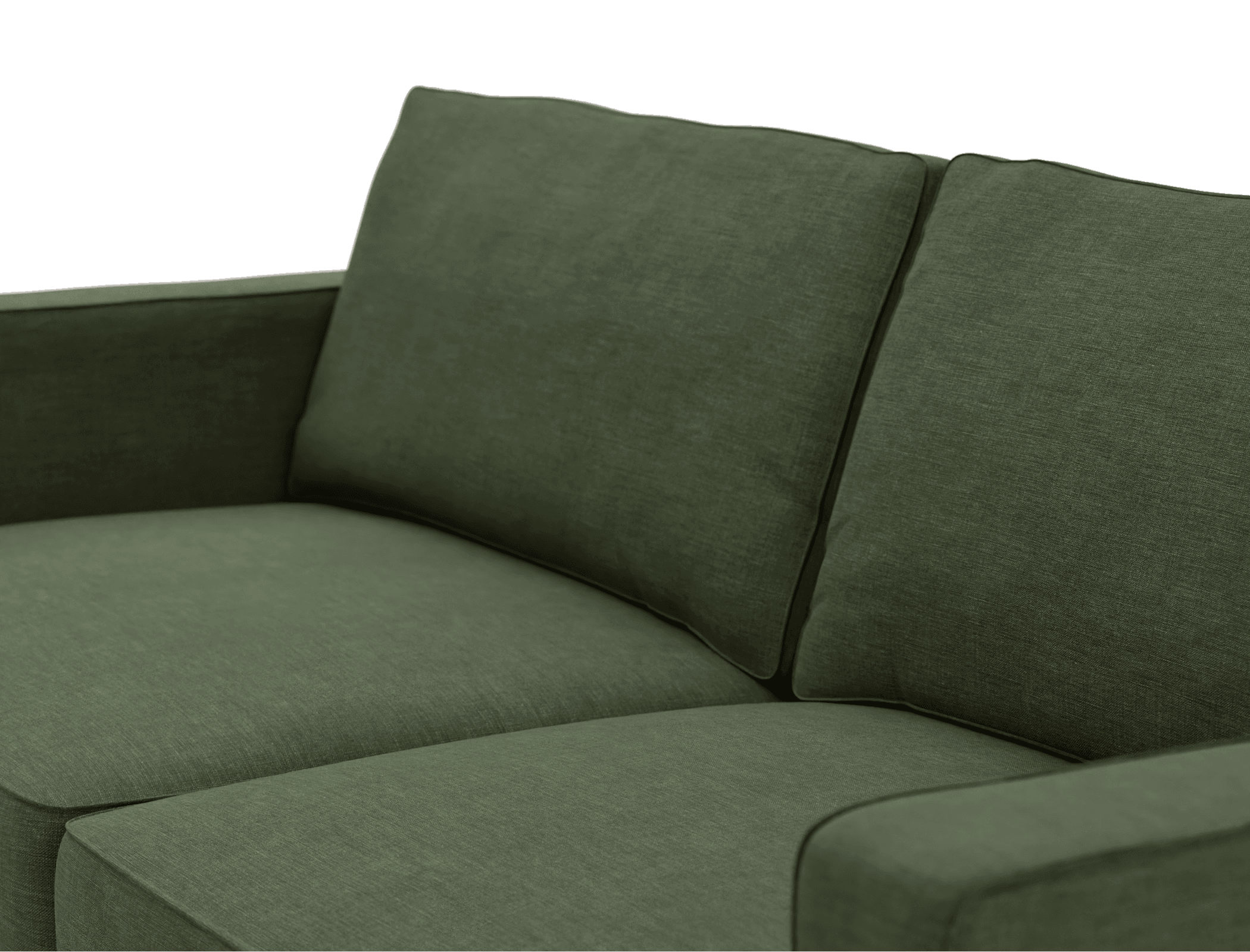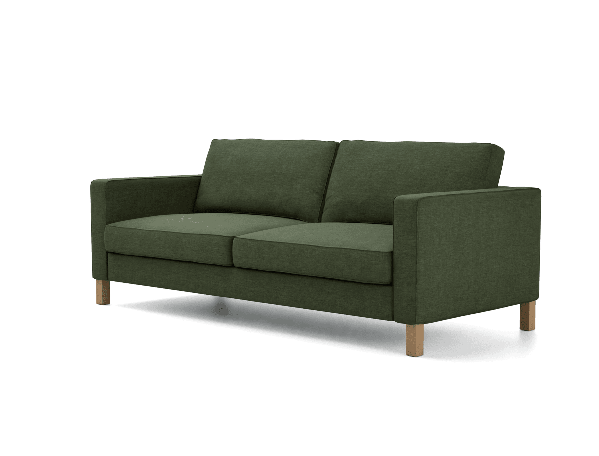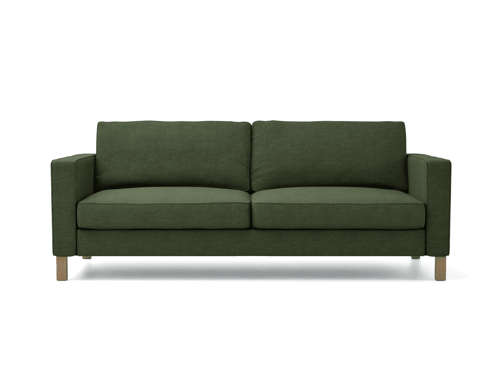This cover includes 7 pieces: 1 frame cover, 2 armrest covers, 2 seat cushion covers and 2 backrest covers. It can only be used on the IKEA Karlstad 3 seater sofa (205 cm wide). If your sofa is smaller, see the IKEA Karlstad 2 seater sofa. If you can pull a bed out of your sofa, see the Karlstad sofa bed. This cover cannot be used on leather sofas. The backrest cushion covers are reversible and secured with zippers. Assembly required.