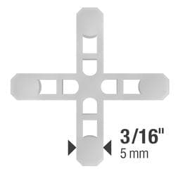 The 3/16 in. Hard-Style Tile Spacers offer the choice of a traditional vertical tombstone-style or inset leave-in installation method. Leave-In Spacers are constructed of hard plastic, so they will not compress when used with marble, stone and large format tile. These spacers feature a lower height profile, so they can easily be covered when grouting. When used in tombstone style, these hard tile spacers can also be easily removed and reused.