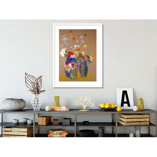 Three Vases of Flowers by Odilon Redon Framed Print - 1000Museums - White