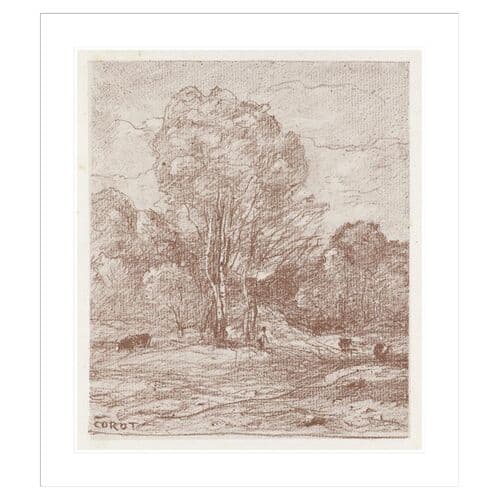 Le dormoir des vaches by Jean-Baptiste-Camille Corot Framed Print - 1000Museums - White